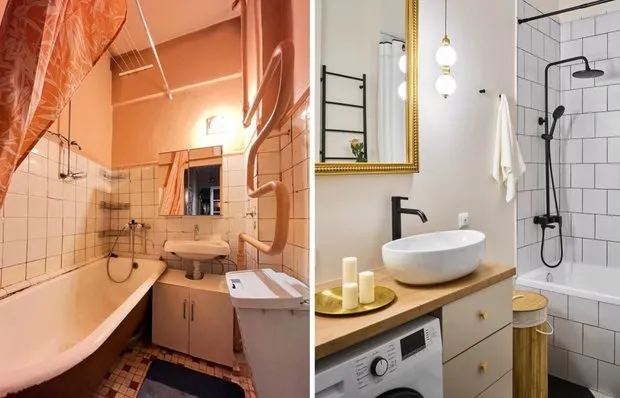 Vor und nach: aus einem getrennten, müden Badezimmer in ein schönes, helles Interieur