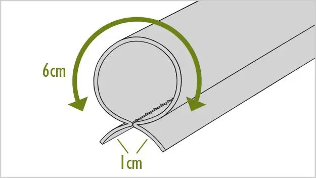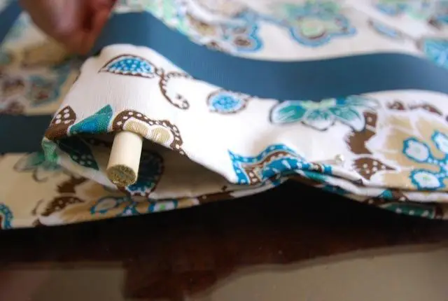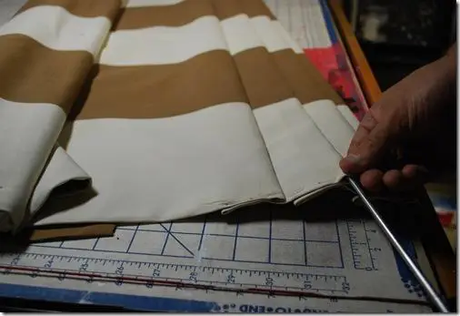 Schritt 4: Falten Sie die untere Kante der Vorhänge um, um die Gewichtsleiste einzufügen. Nähen Sie dann eine dekorative Kante an der Rückseite. Die Stofftaschen dienen nun zum Einlegen der Stangen.