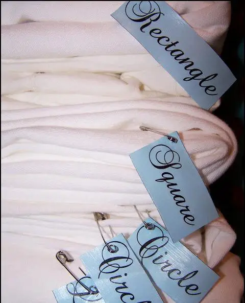 4. Sie haben sicher schon einmal eine quadratische Tischdecke anstelle einer runden herausgezogen. Eine einfache Lösung: eine Etikette mit Beschreibung des Typs und der Größe anbringen.