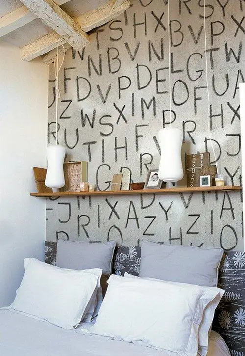 Buchstaben und Schriftzüge sind bereits seit langem populär. Rührende Worte schmücken Regale, Kamine und Kinderzimmer. Doch erst kürzlich begann man, Buchstaben und Texte direkt auf Wände zu übertragen, wodurch erstaunliche und äußerst effektvolle Beispiele für Wanddekoration entstehen.
