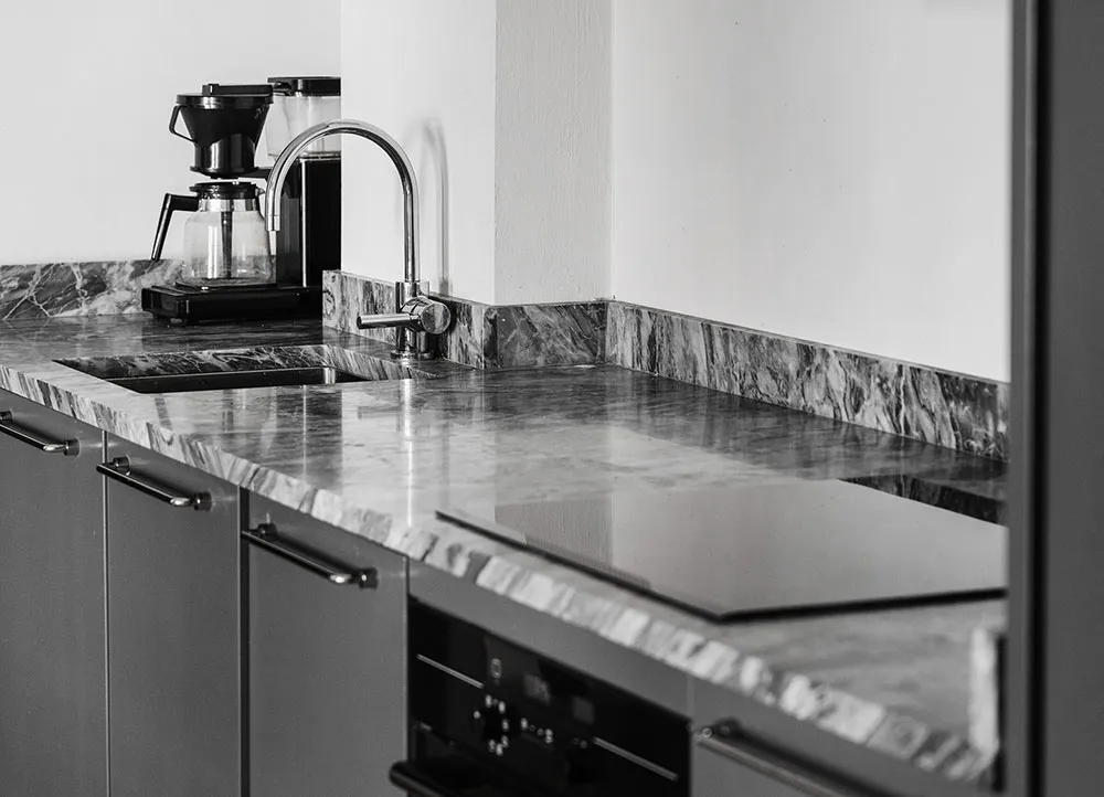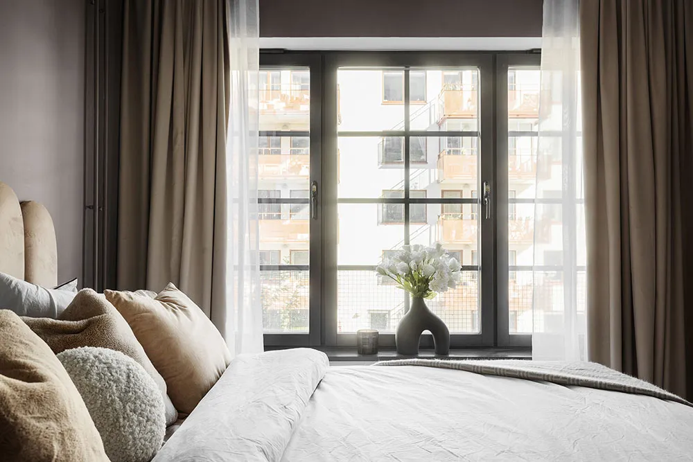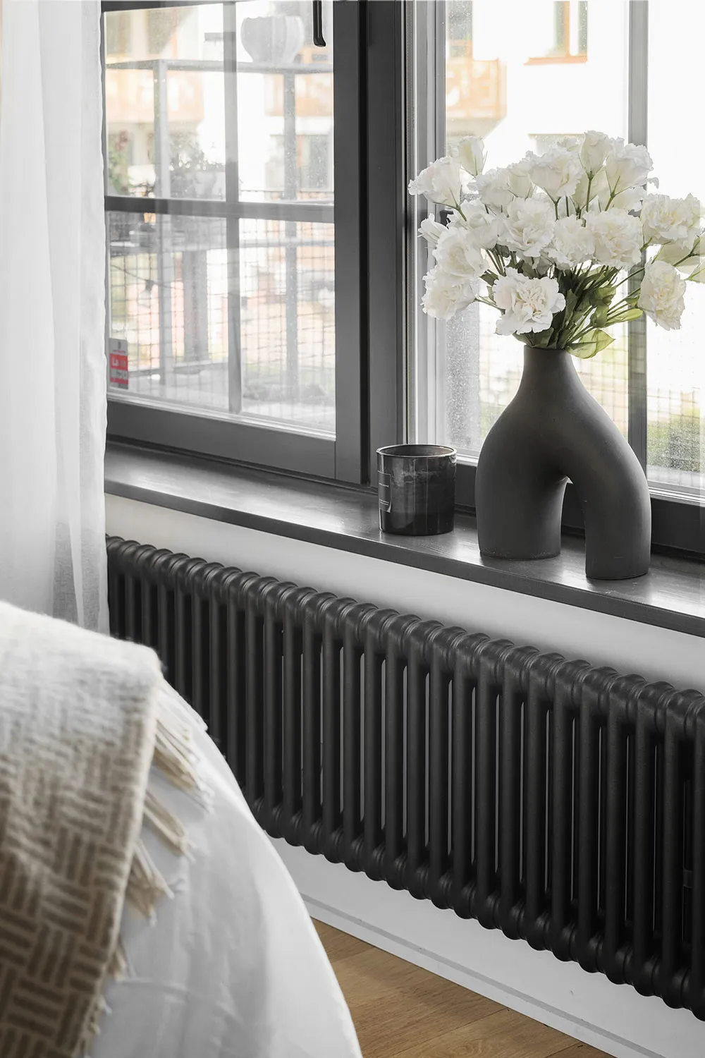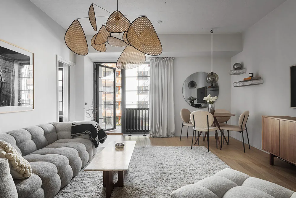 Das Interior dieser 57 qm großen Wohnung in Stockholm ist fast monochromatisch, doch der industrielle Charakter des Raums spürt man in allen Räumen.
