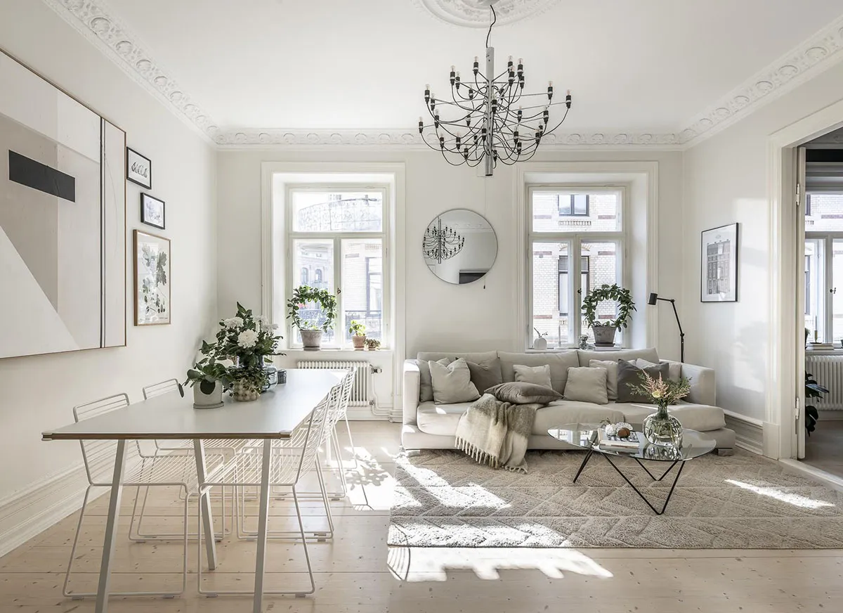 Helle monochrome Wohnung in Göteborg mit blauer Schlafzimmer (92 qm)