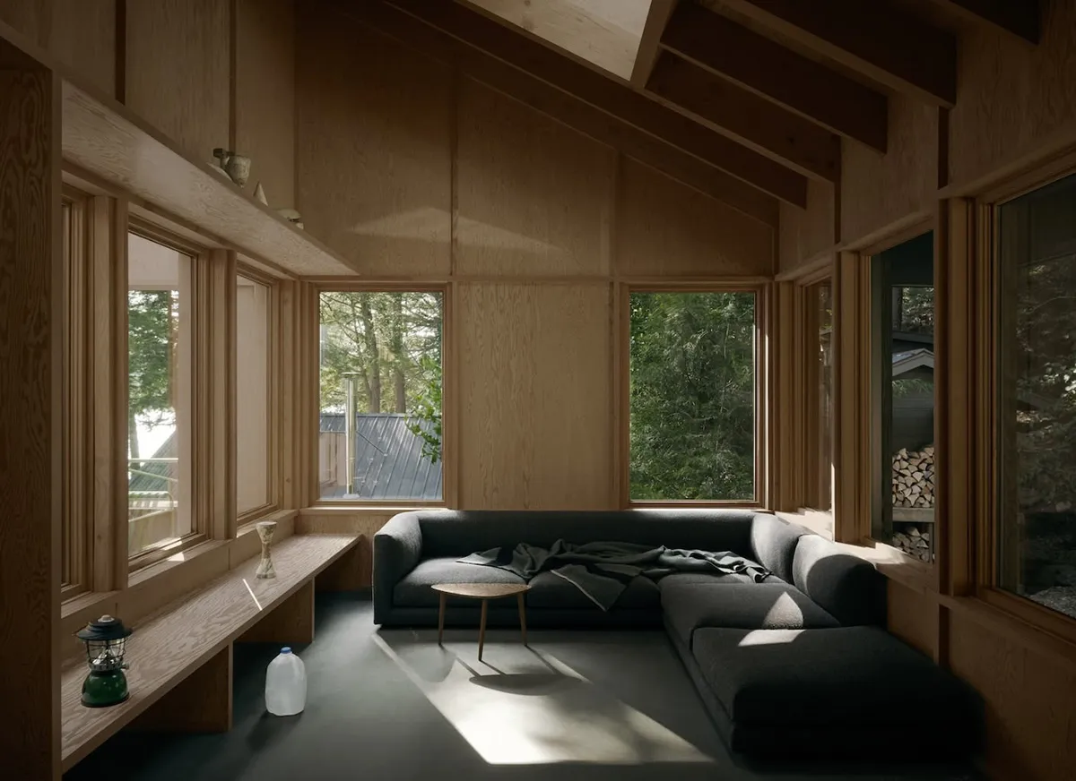 Stylischer Interieur in der Umgebung eines Waldes in Kanada