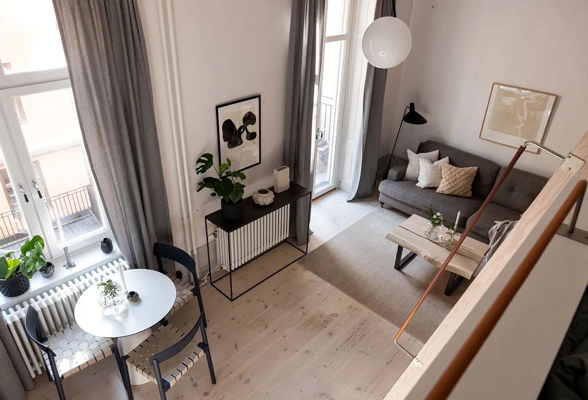 Kleine skandinavische Wohnung mit Loft (28 qm)