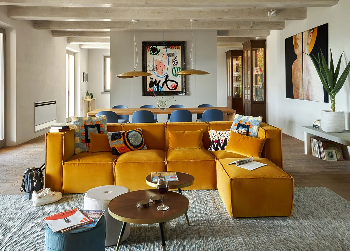 Leuchtende moderne Innenausstattungen einer historischen Steinvilla in Umbrien