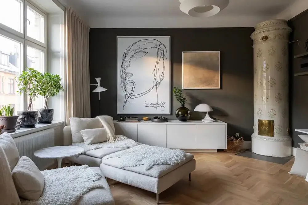 Moderne Klassik mit stylischen dunklen Akzenten: Wohnung in Stockholm