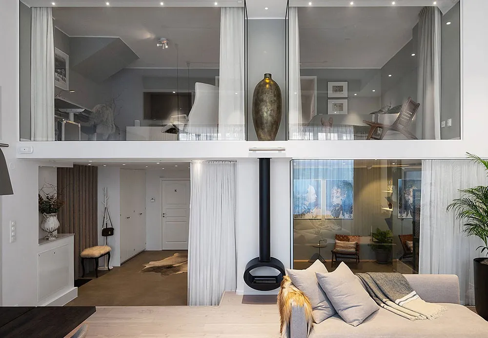 Stylische Luxus-Loft-Oberfläche in Stockholm
