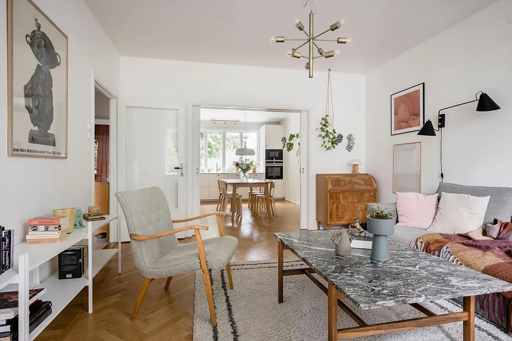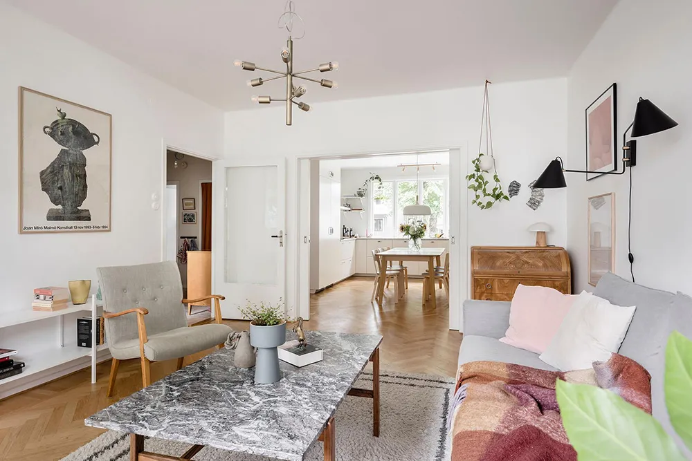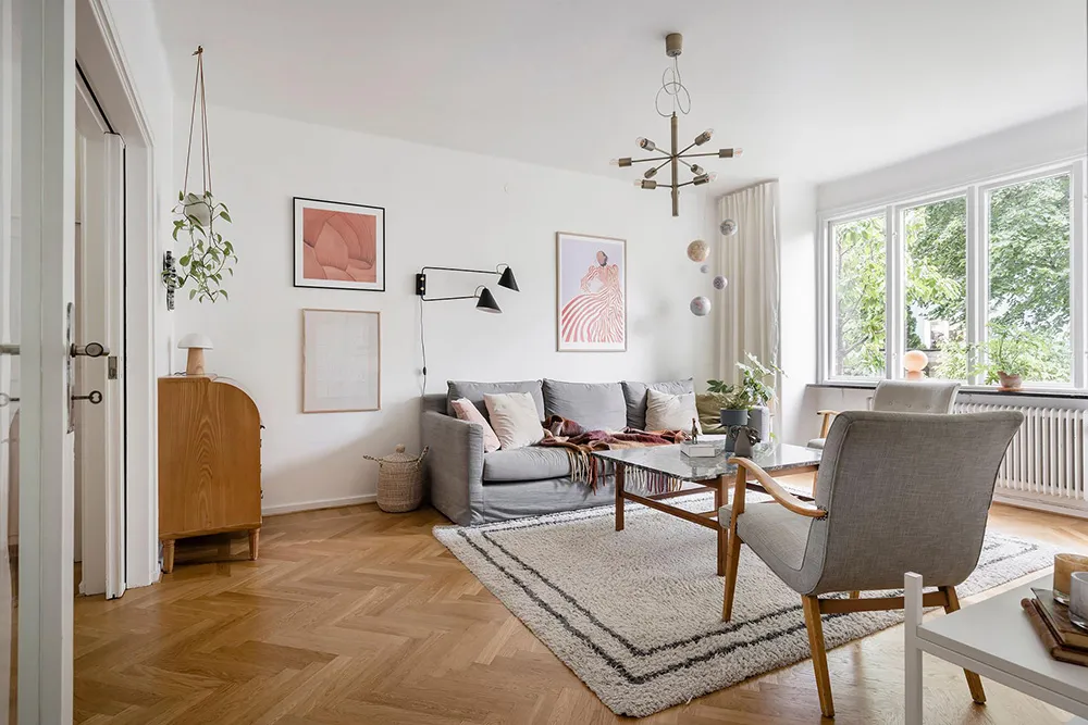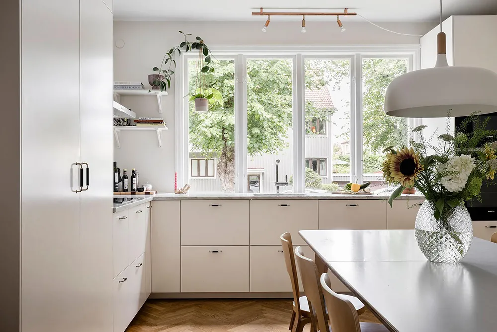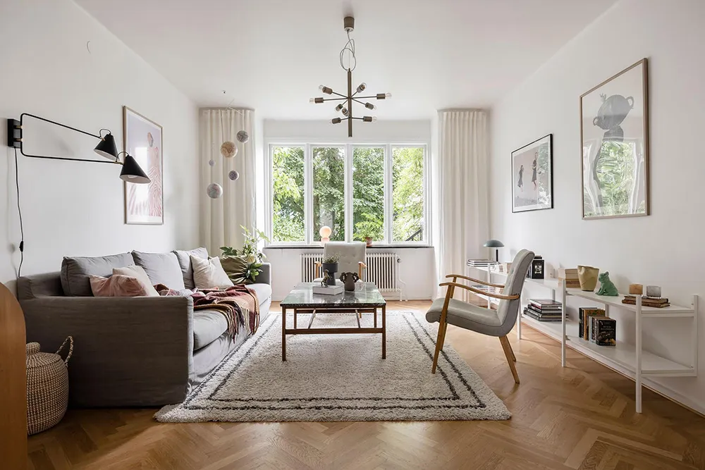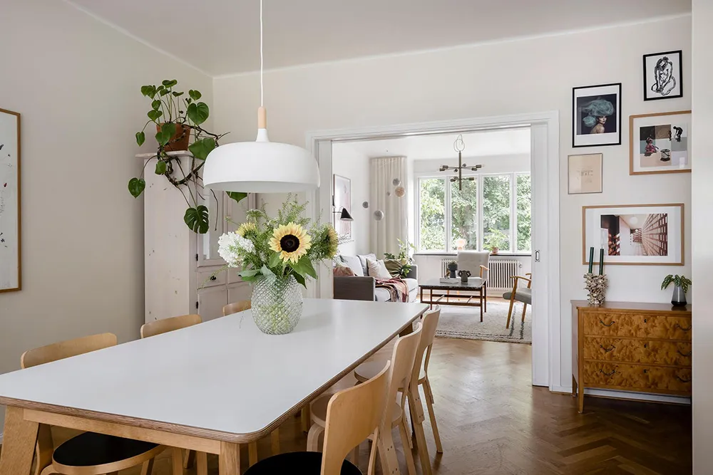 Einfacher, aber lichtdurchfluteter und gemütlicher Interior-Design einer Wohnung im Vorort von Göteborg (77 qm)