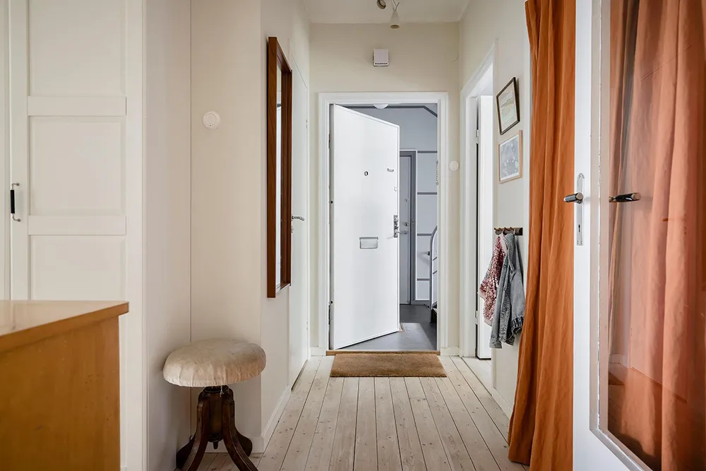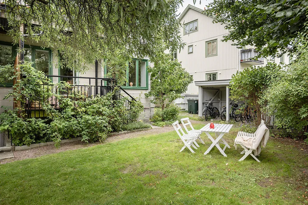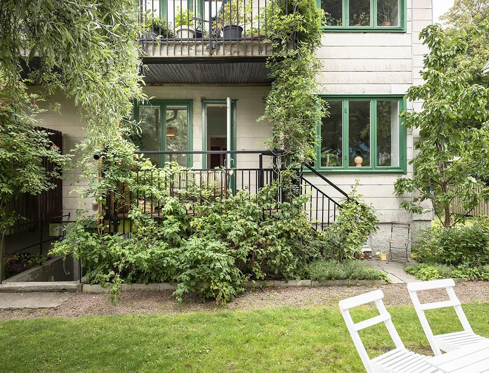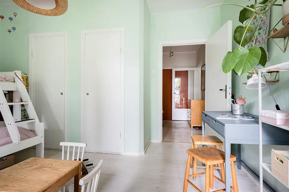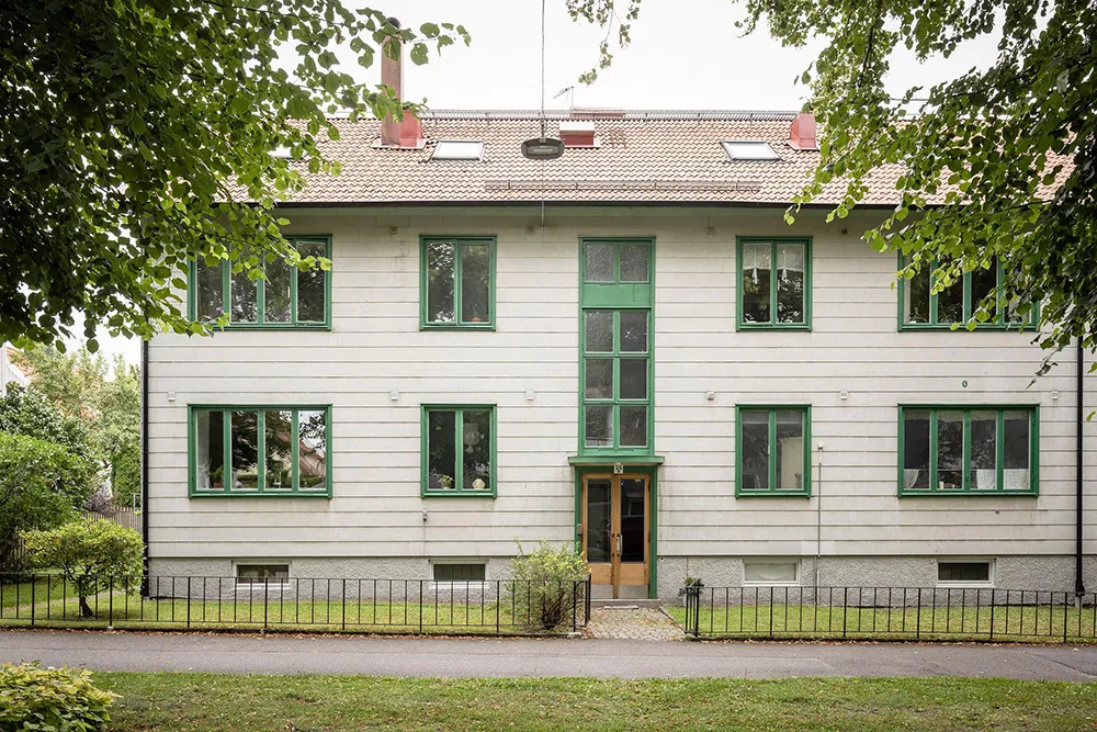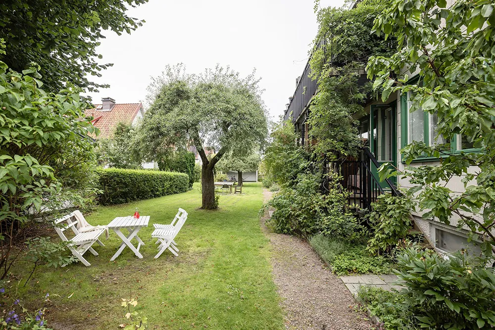 Diese Wohnung befindet sich in einem schlichten, aber sehr gemütlichen alten Haus im Vorort von Göteborg, in einem Gebiet mit viel Grün und einer landschaftlichen Atmosphäre.