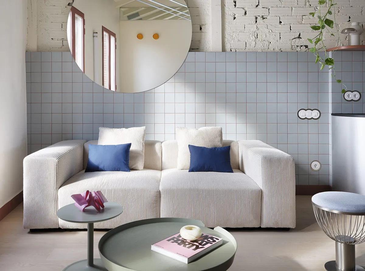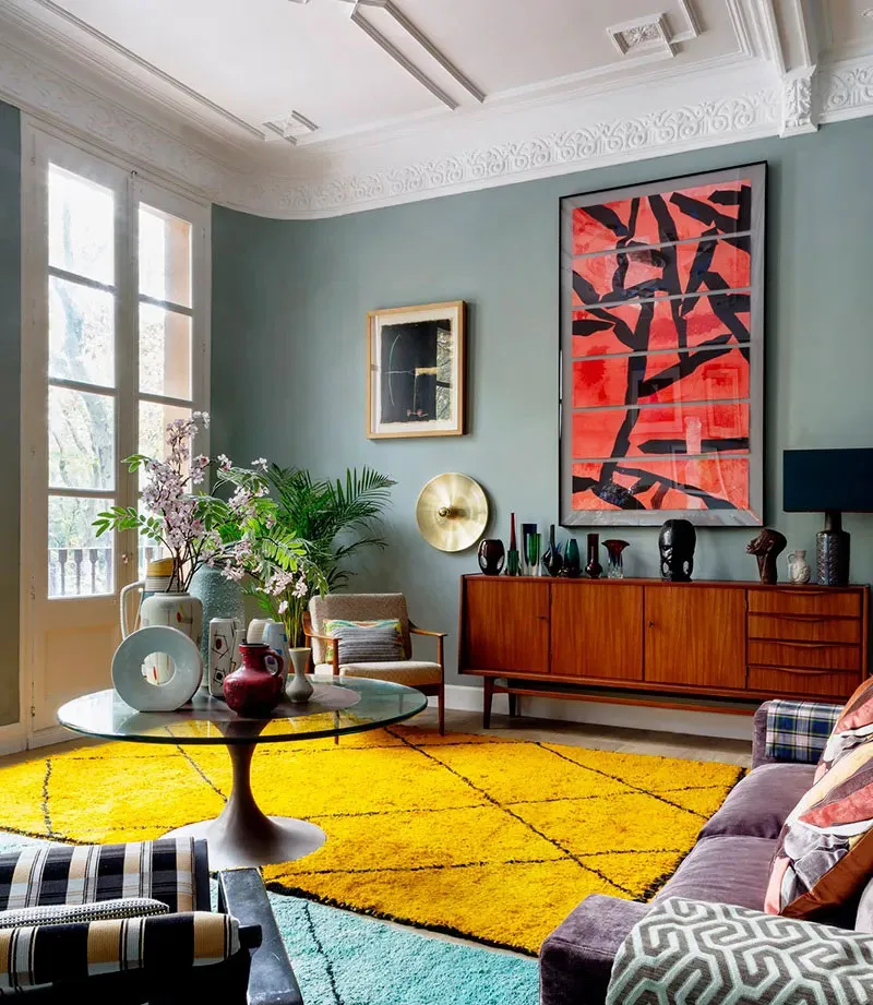 Saftiger Design einer Wohnung in einem modernistischen Haus in Barcelona