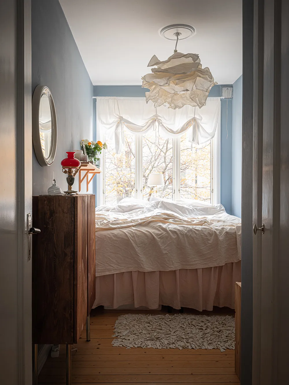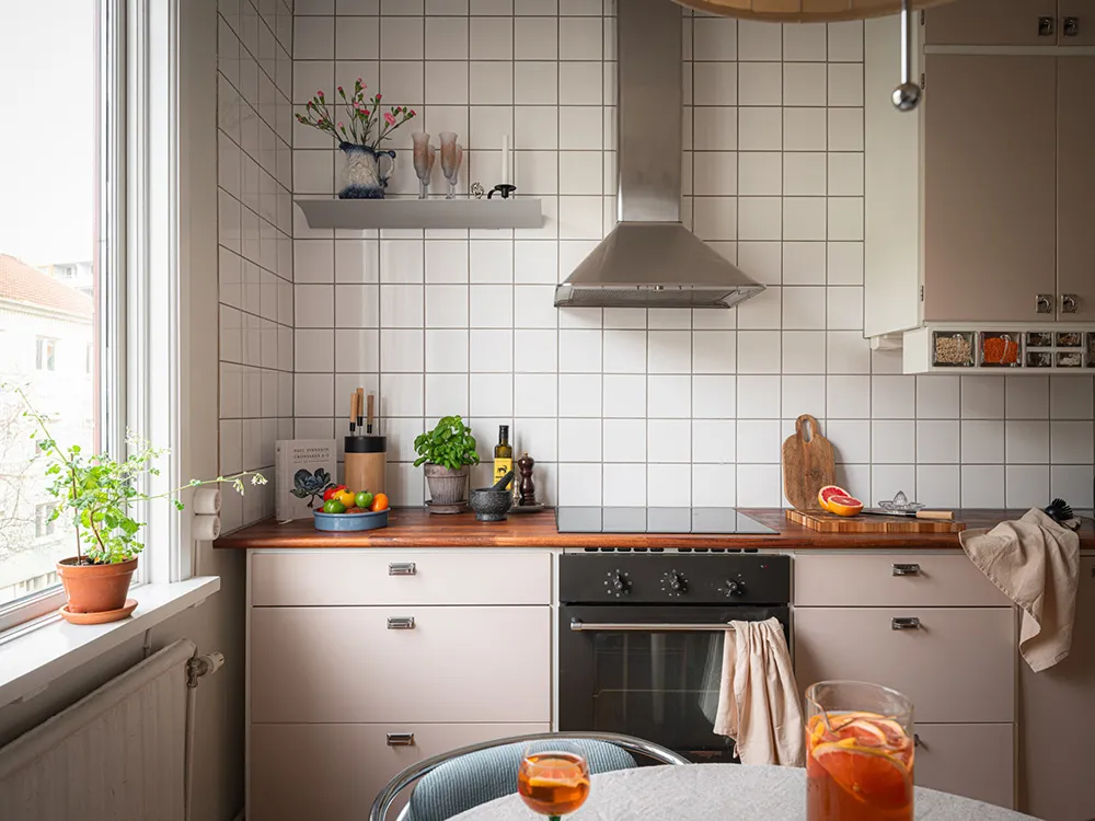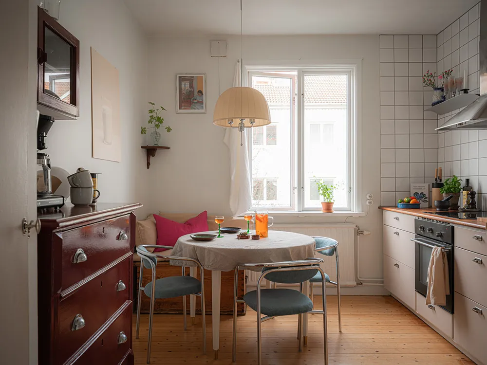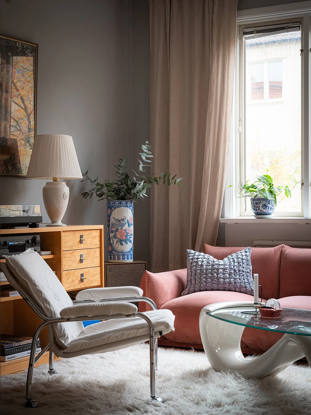 Pink Sofa und Retro-Noten: Interessanter Design einer kleinen Wohnung in Schweden (48 qm)
