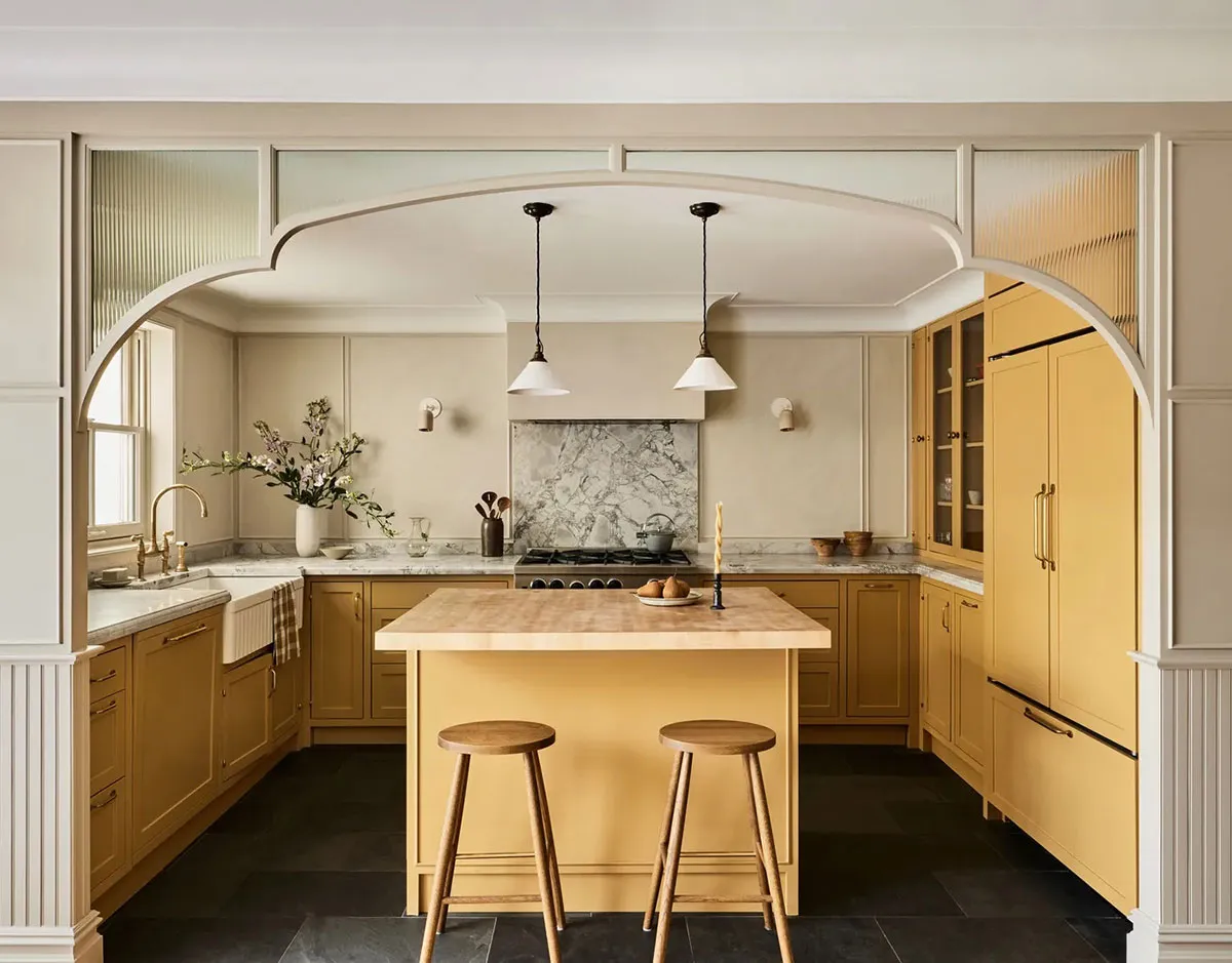 Die Aufgabe der Gachot Studio war es, einen eleganten modernen Wohnraum zu schaffen, der nicht mit dem prekriegscharakter des Hauses in Konflikt gerät – so lautete die Herausforderung für das Projekt der Wohnung auf Manhattan.