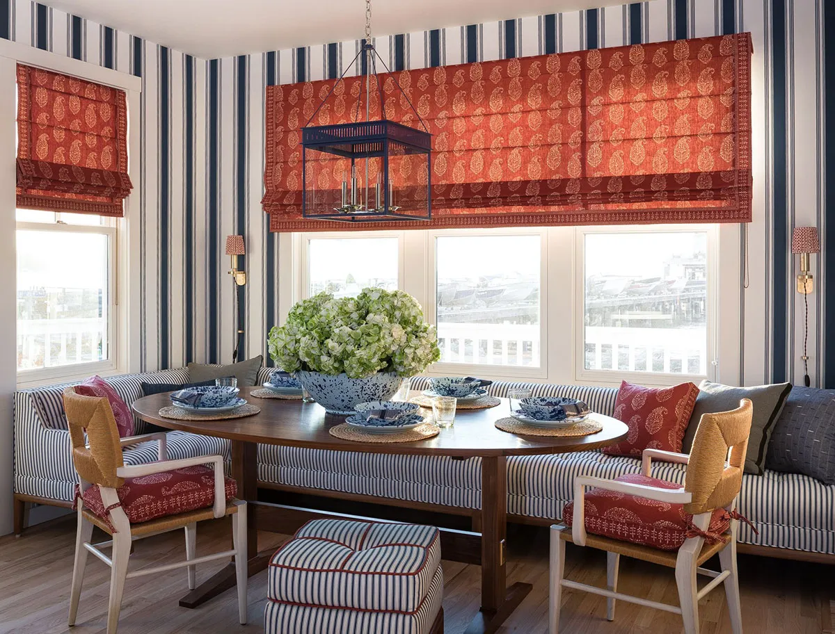Leben in Streifen: Gemütlicher Ferienhaus mit Mustern und marinen Motiven am Ufer