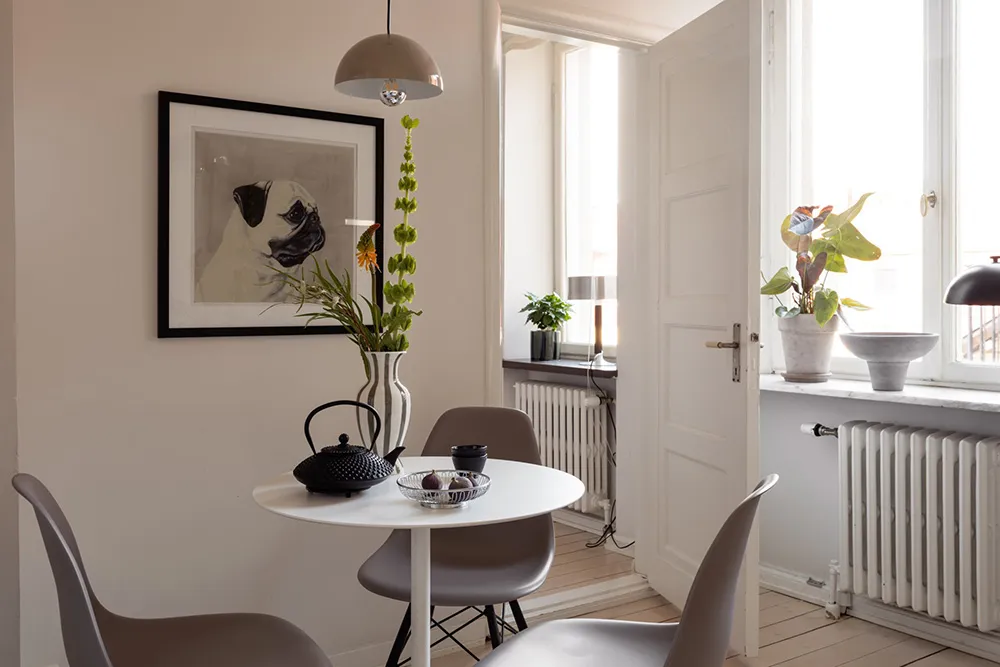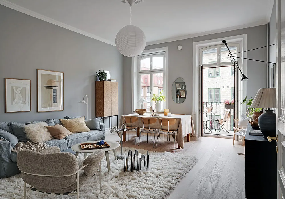 Angenehmes Zusammenspiel von kühlen und warmen Tönen in einer skandinavischen Wohnung (81 qm)