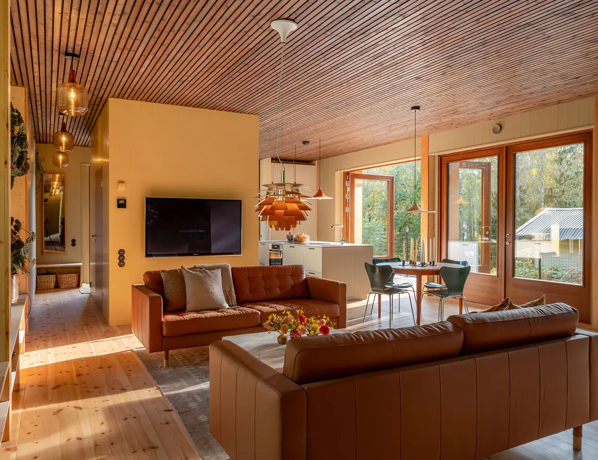 Wärme aus natürlichen Holz: gemütlicher moderner Feriendom in Schweden