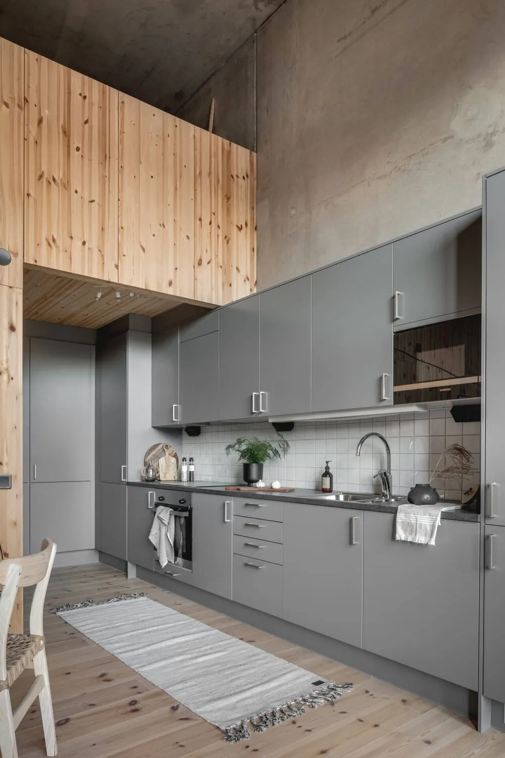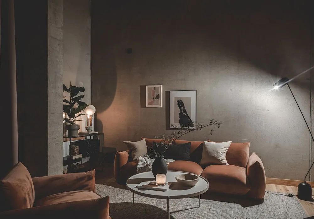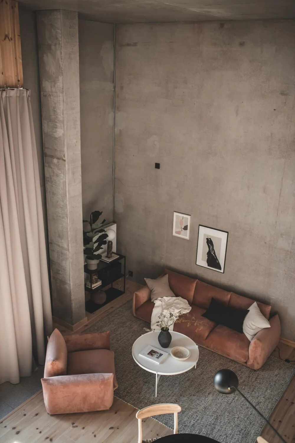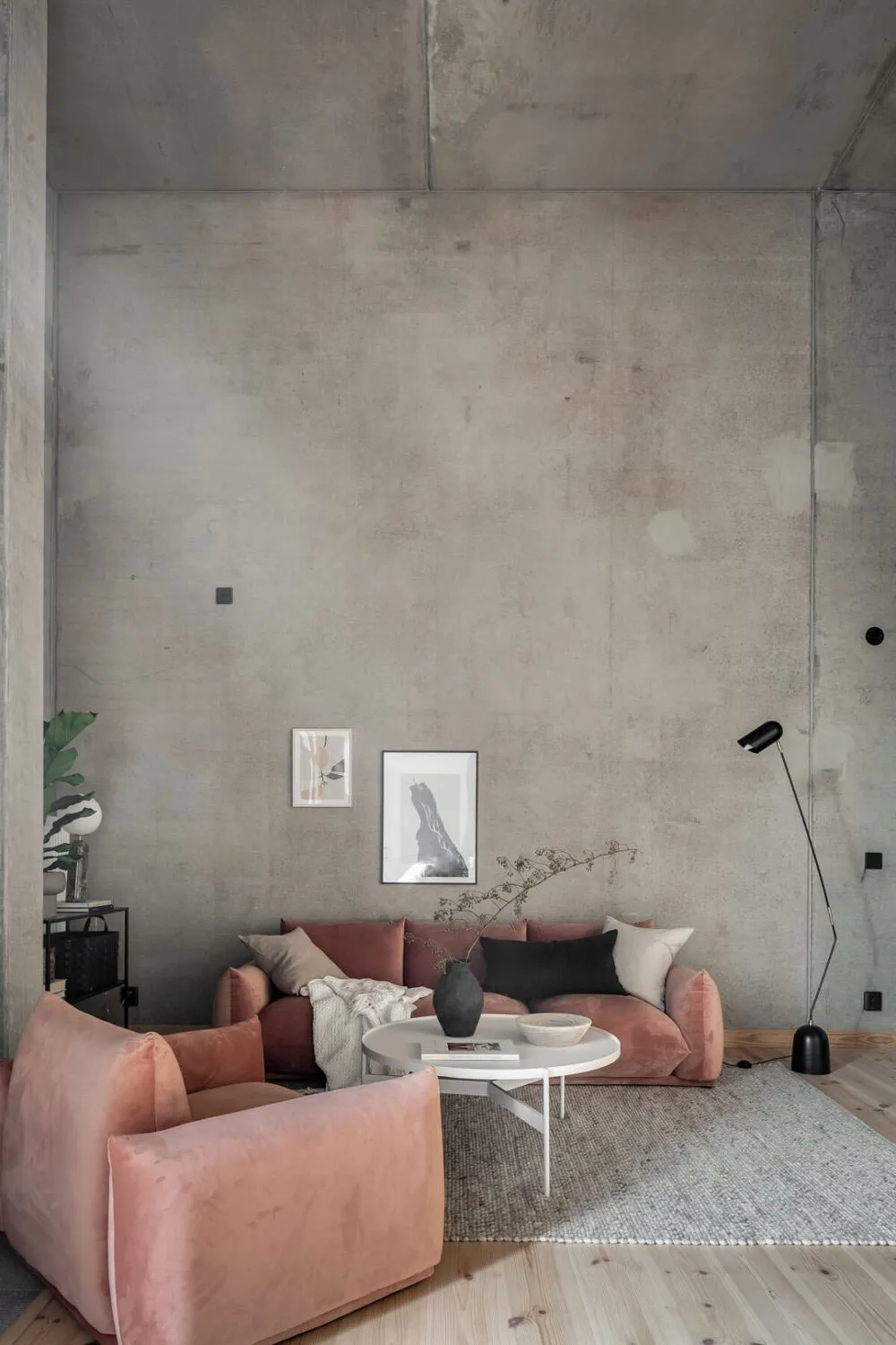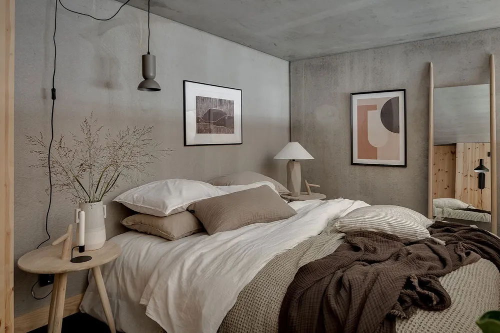 Kalter unbehanderter Beton und warmes Holz sind eine gewinnende Kombination für das Interieur dieser Wohnung in Göteborg.