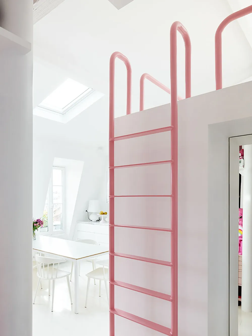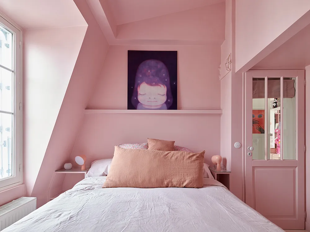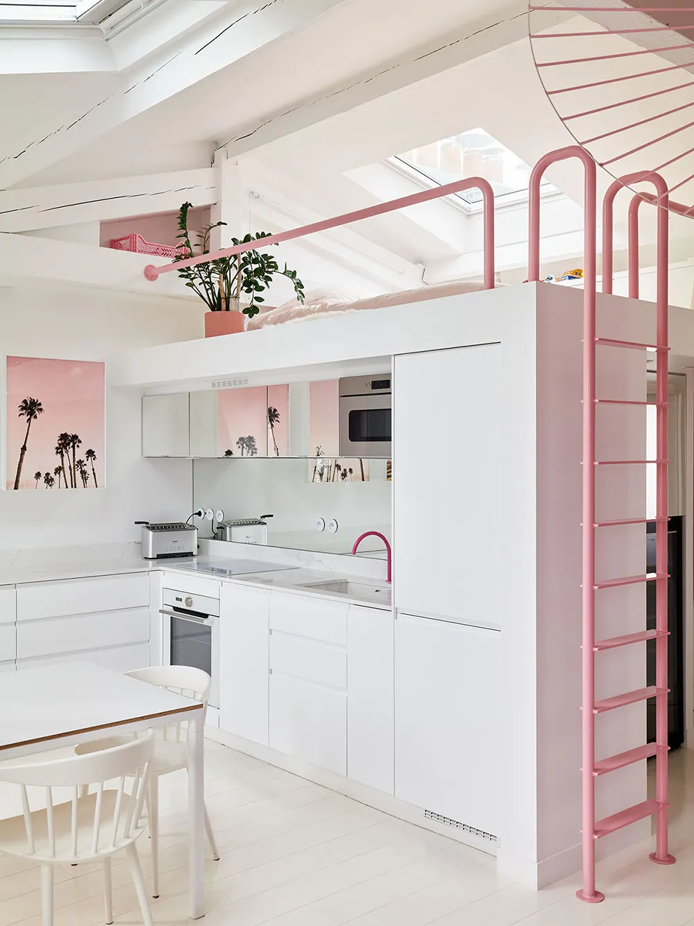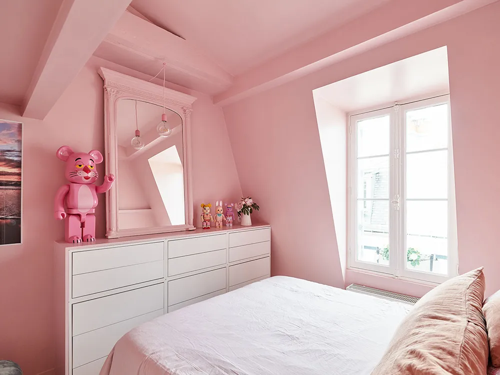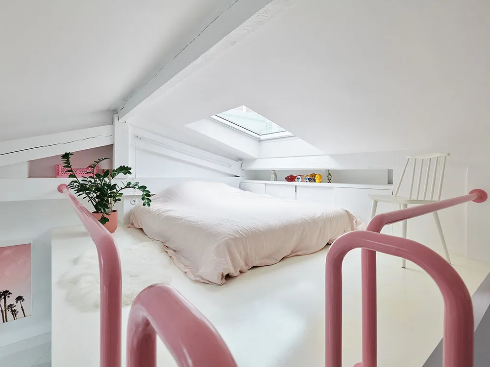 Weißes Apartment in Paris mit Attik-Flur und rosa Akzenten (54 qm)