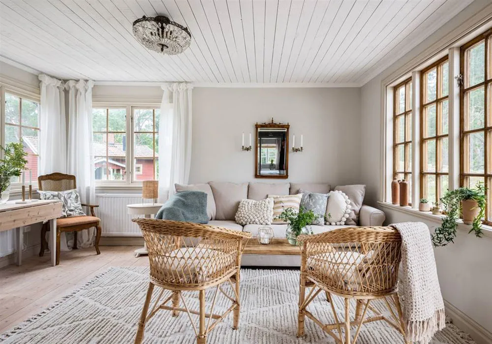 Warm und ästhetischer Interior eines Familienhauses am Strand in England