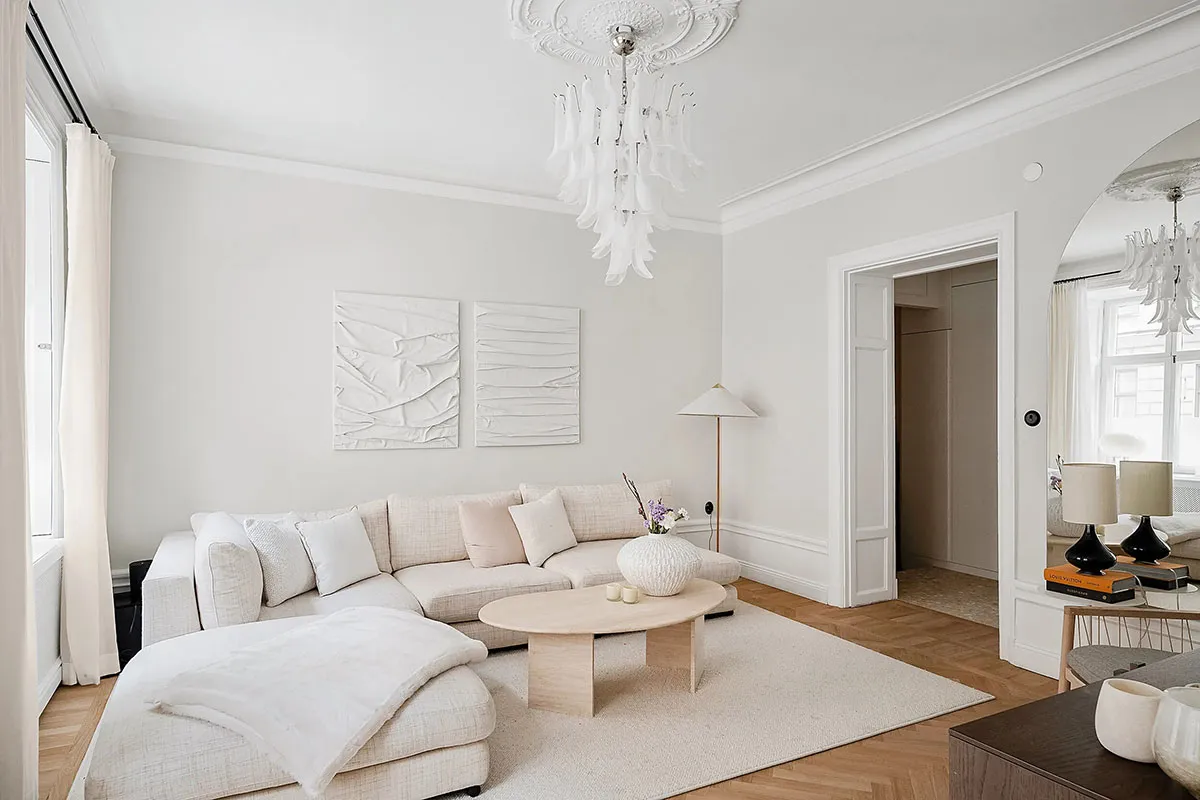 Weicher und eleganter Interior in Milchtonen in Schweden (75 qm)