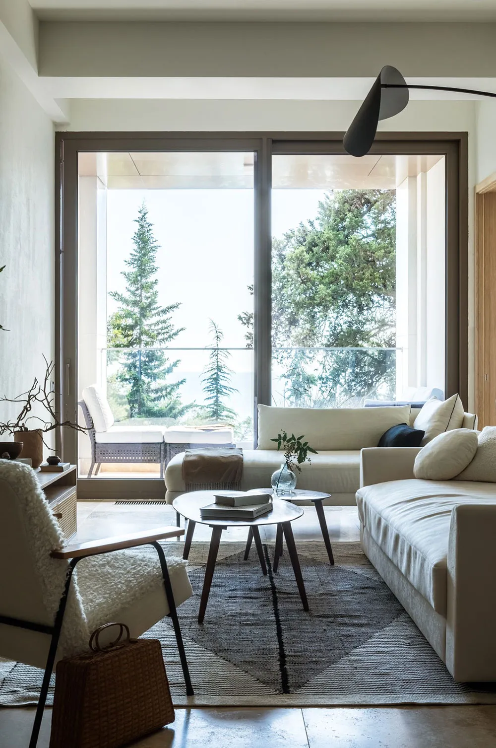 „Nichts sollte von den wunderbaren Meerblicken und Kiefern ablenken“ – nach diesem Prinzip richteten sich die Designer Ludmila und Anastasia Ermolaeva beim Einrichten des Interieurs einer Wohnung im neuen Haus am Rand des Massandra-Parks in Jalta.