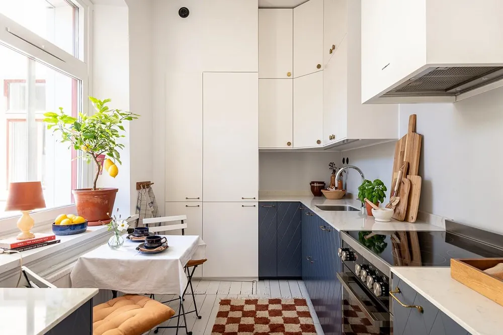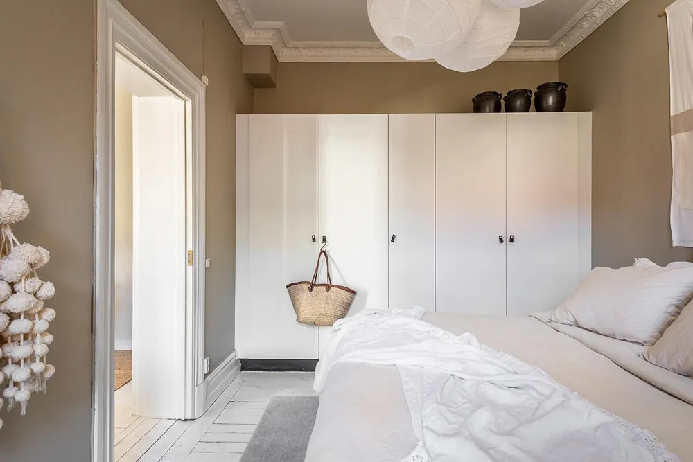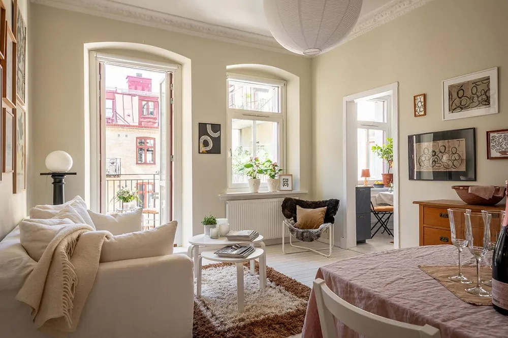 Die Fläche dieser Zweizimmerwohnung in einem alten Haus in Schweden beträgt nur 53 qm.