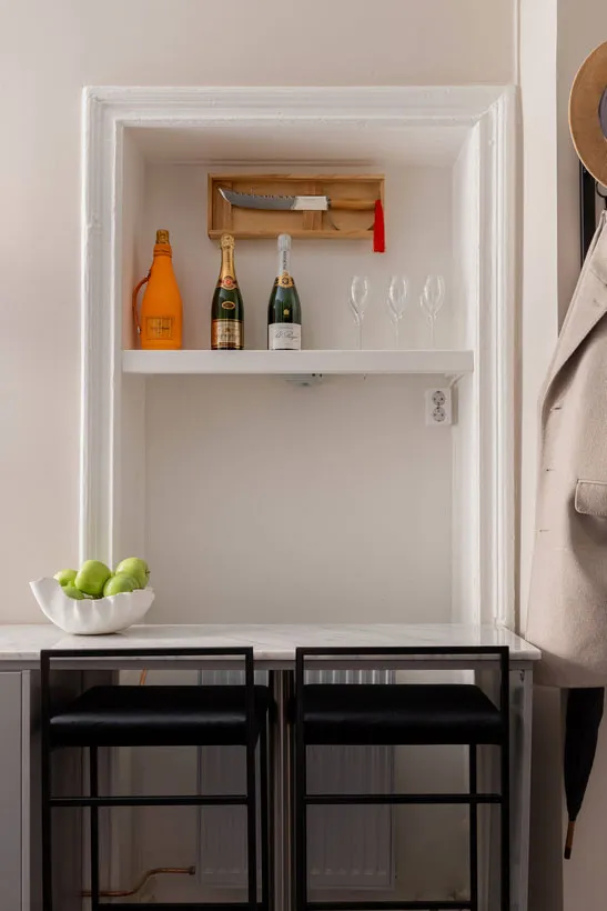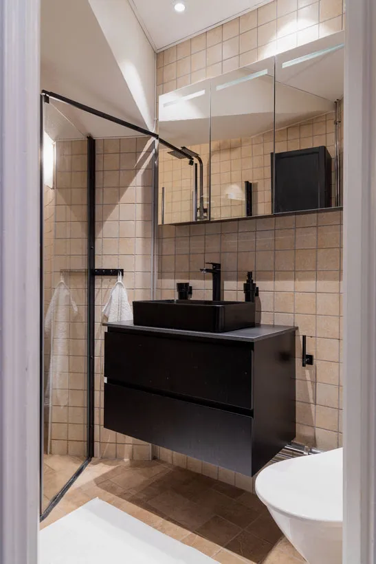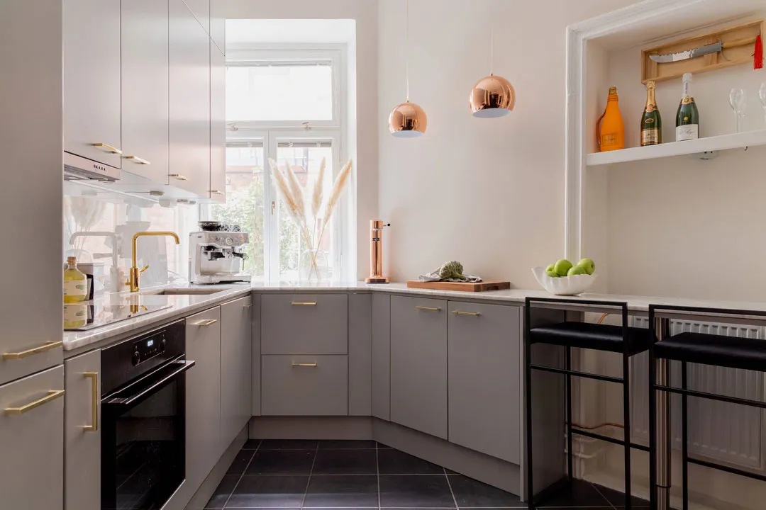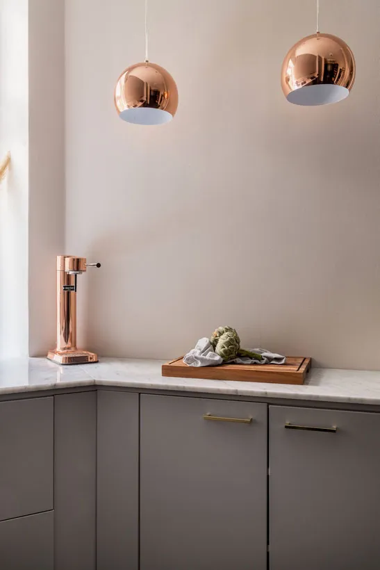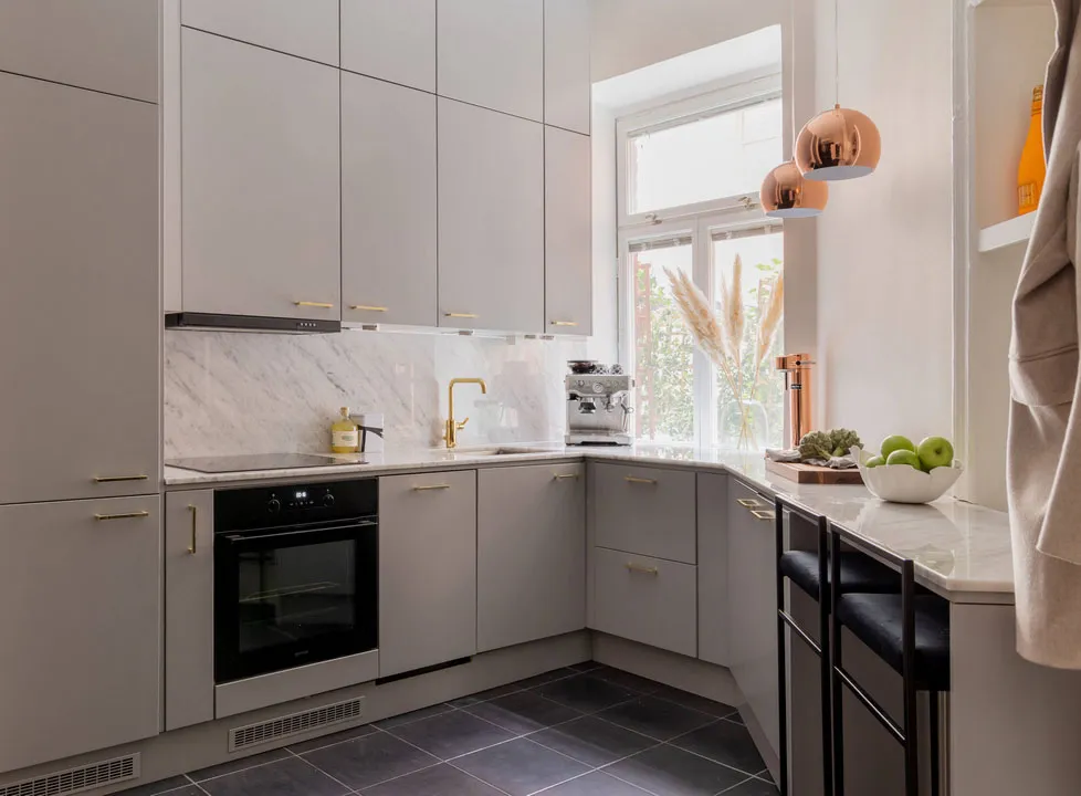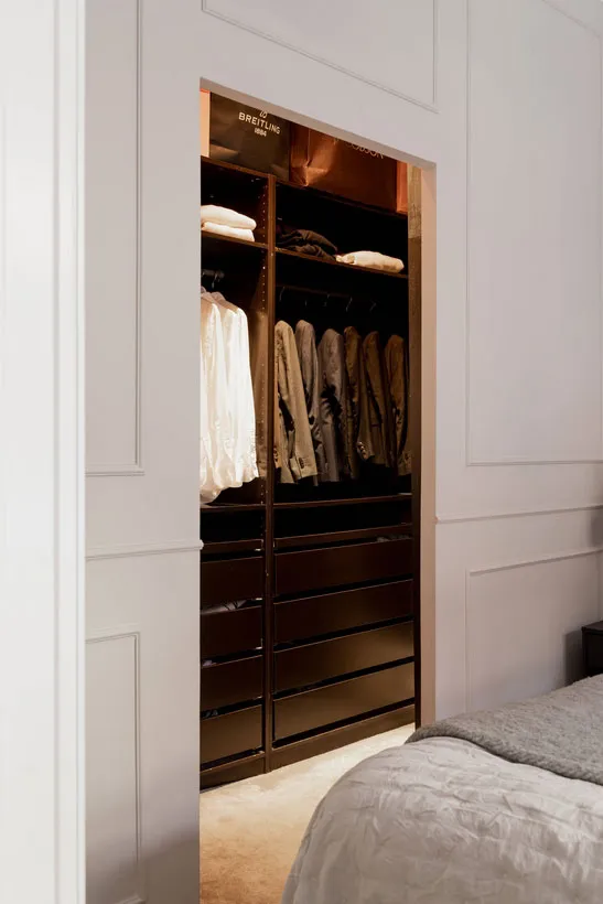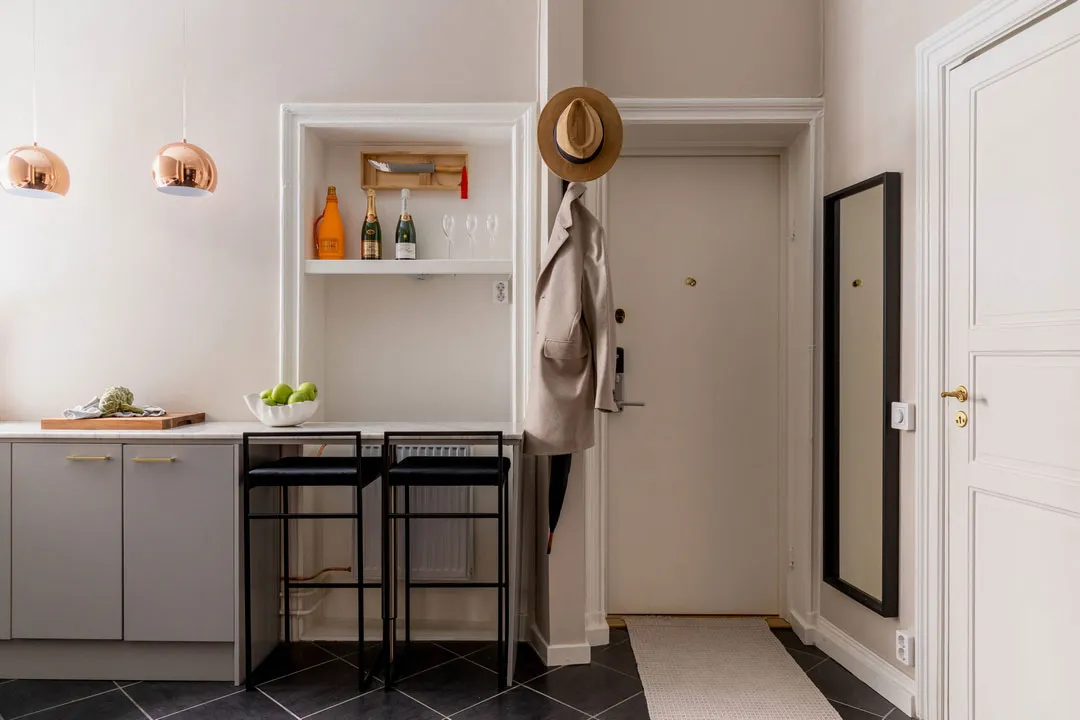 Stil und Charakter in dieser schwedischen Wohnung werden durch klassische Moldingen geprägt – das Wohnzimmer und Schlafzimmer wirken sehr elegant, aber gleichzeitig modern durch die Möbel und Dekoration.
