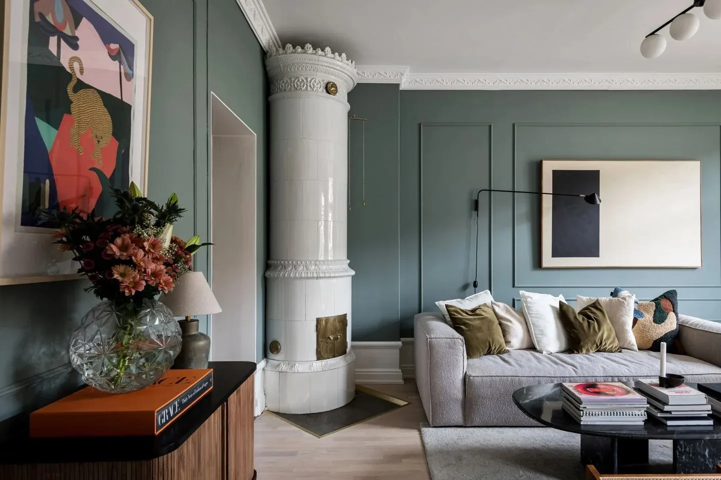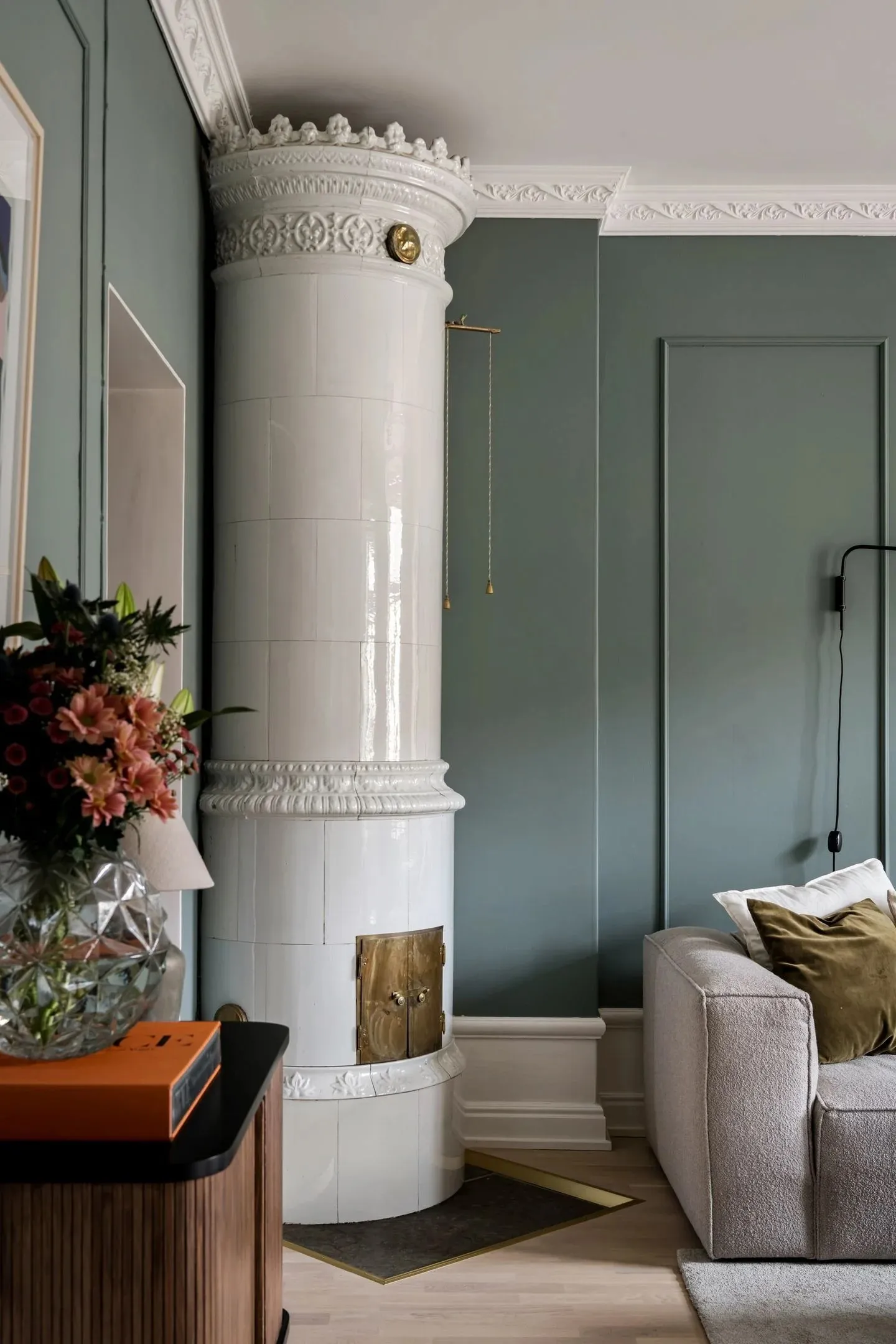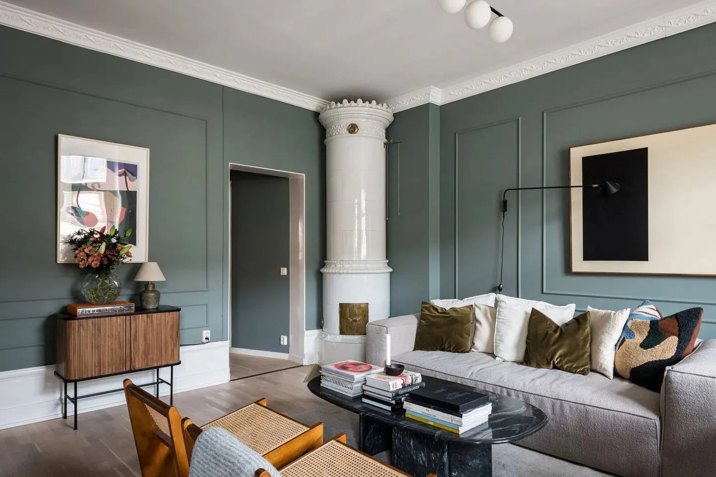 Schwedische Designer haben Farbkontraste in das Interieur dieser Wohnung im alten Haus in Stockholm hinzugefügt.