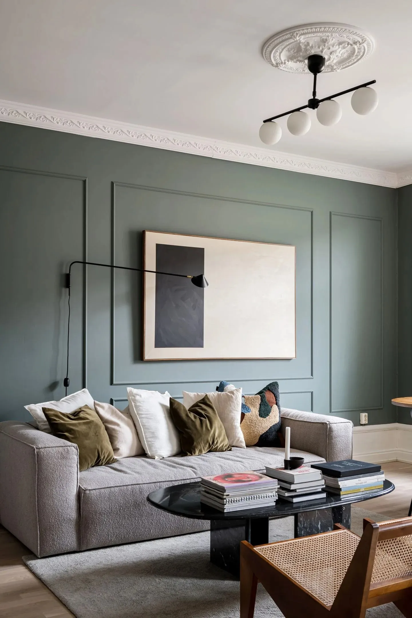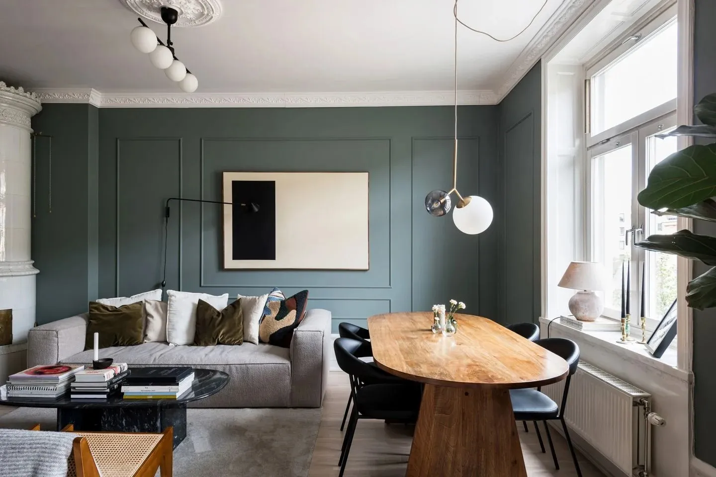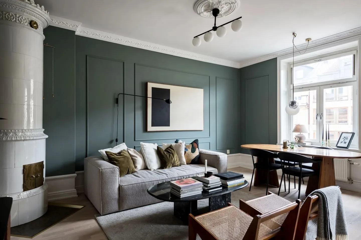 Schwedische Designer haben Farbkontraste in das Interieur dieser Wohnung im alten Haus in Stockholm hinzugefügt.