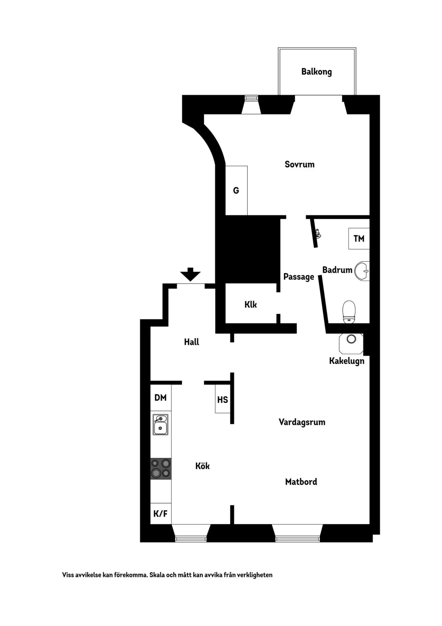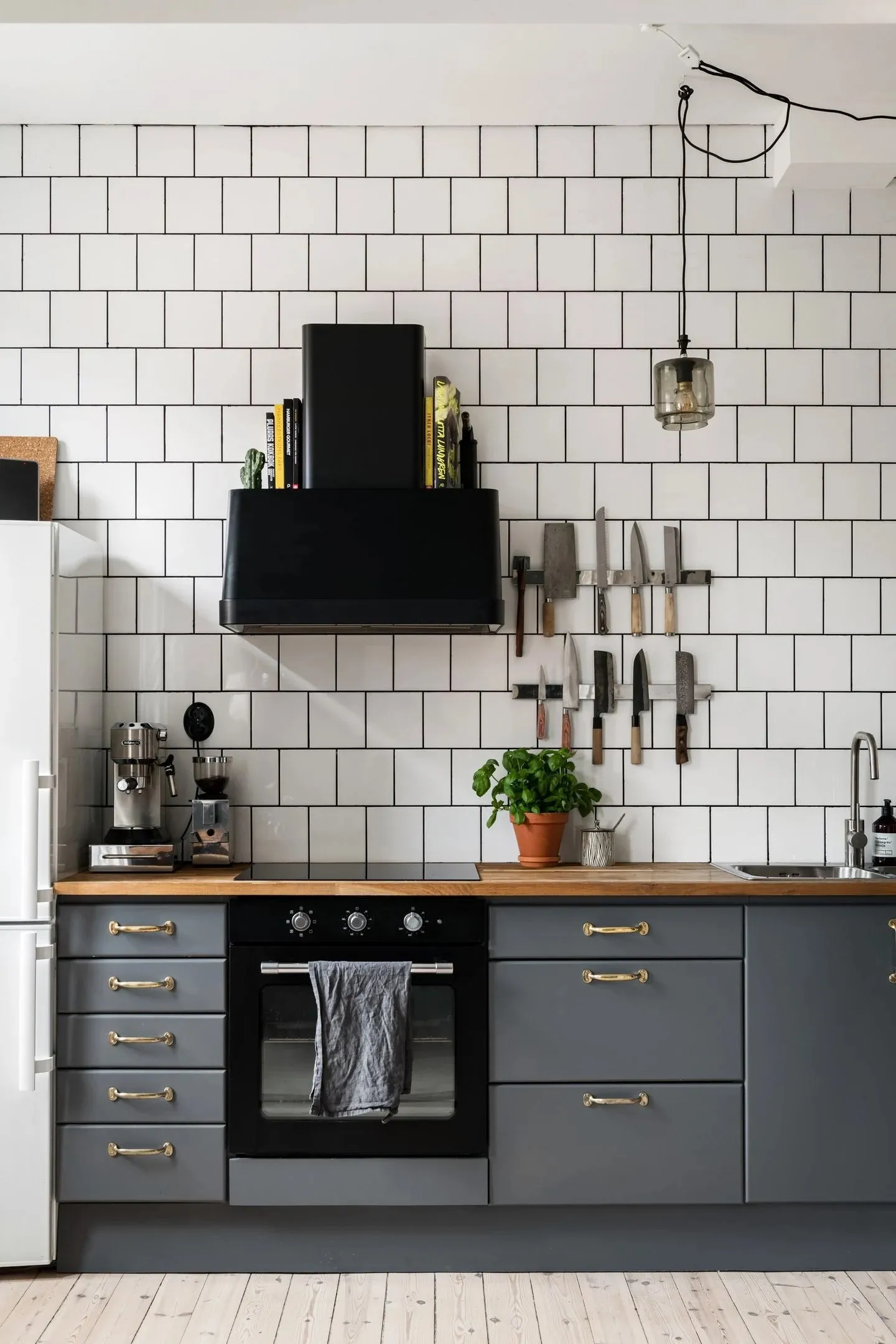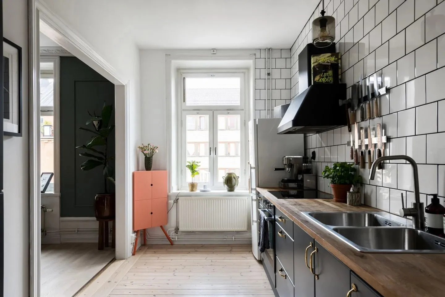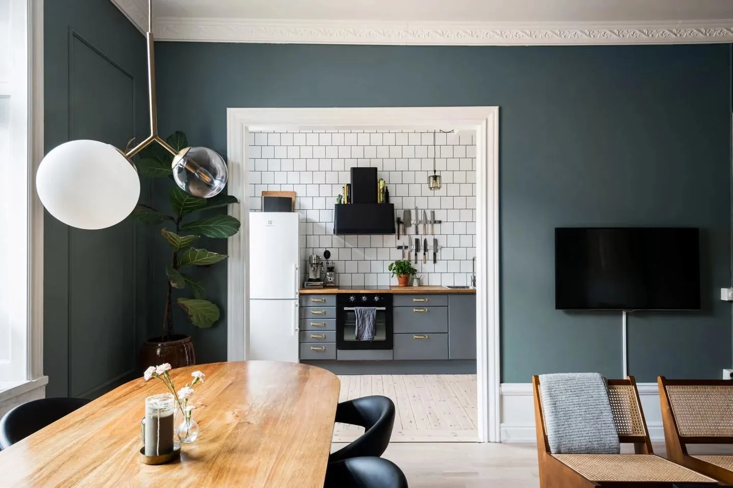 Zweizimmerwohnung in Schweden mit dunklen Tönen (57 qm)