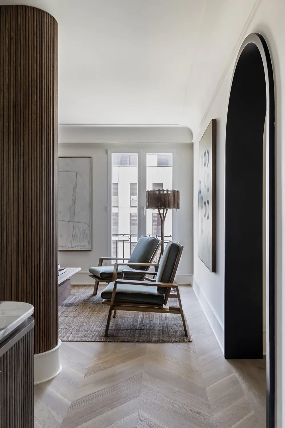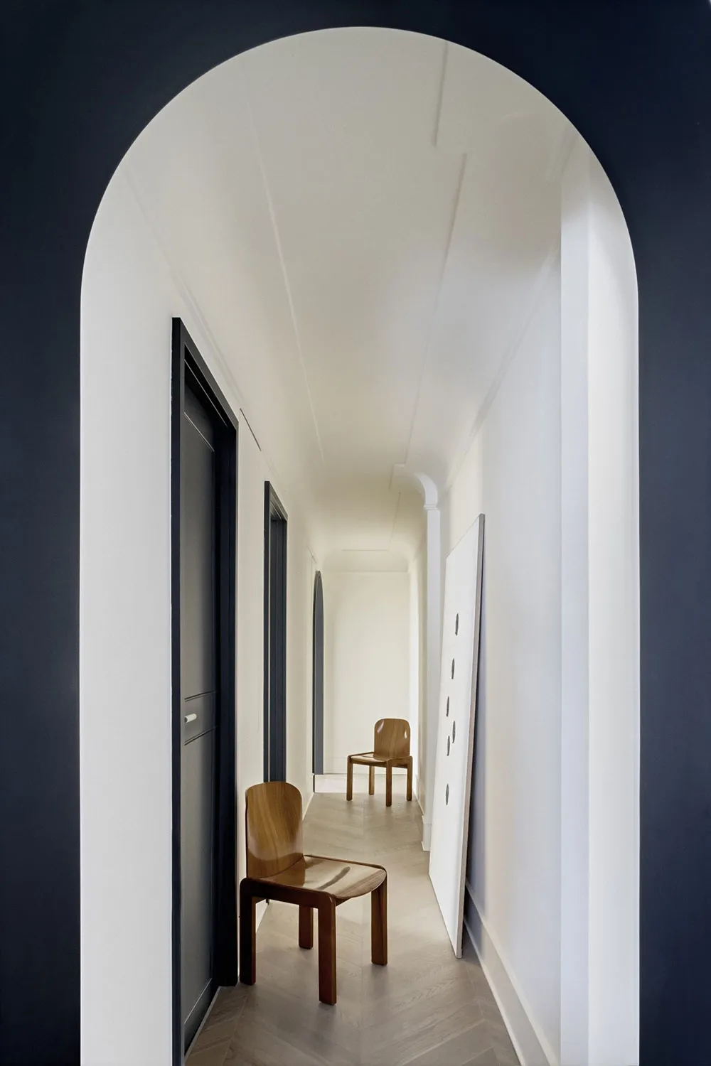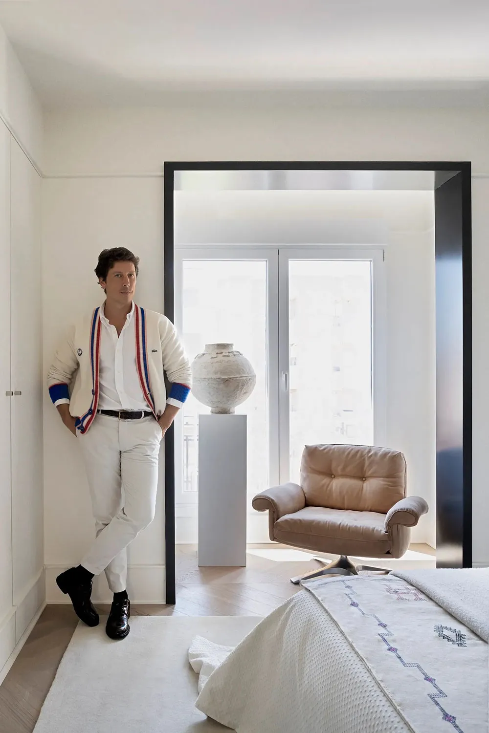 Der Designer Tristan Domecq nennt das weiße Schwert in der Wohnung im Zentrum von Madrid, an dem er gearbeitet hat, aber vor Beginn der Renovierung war der Raum eher wie ein hässlicher Entlein.