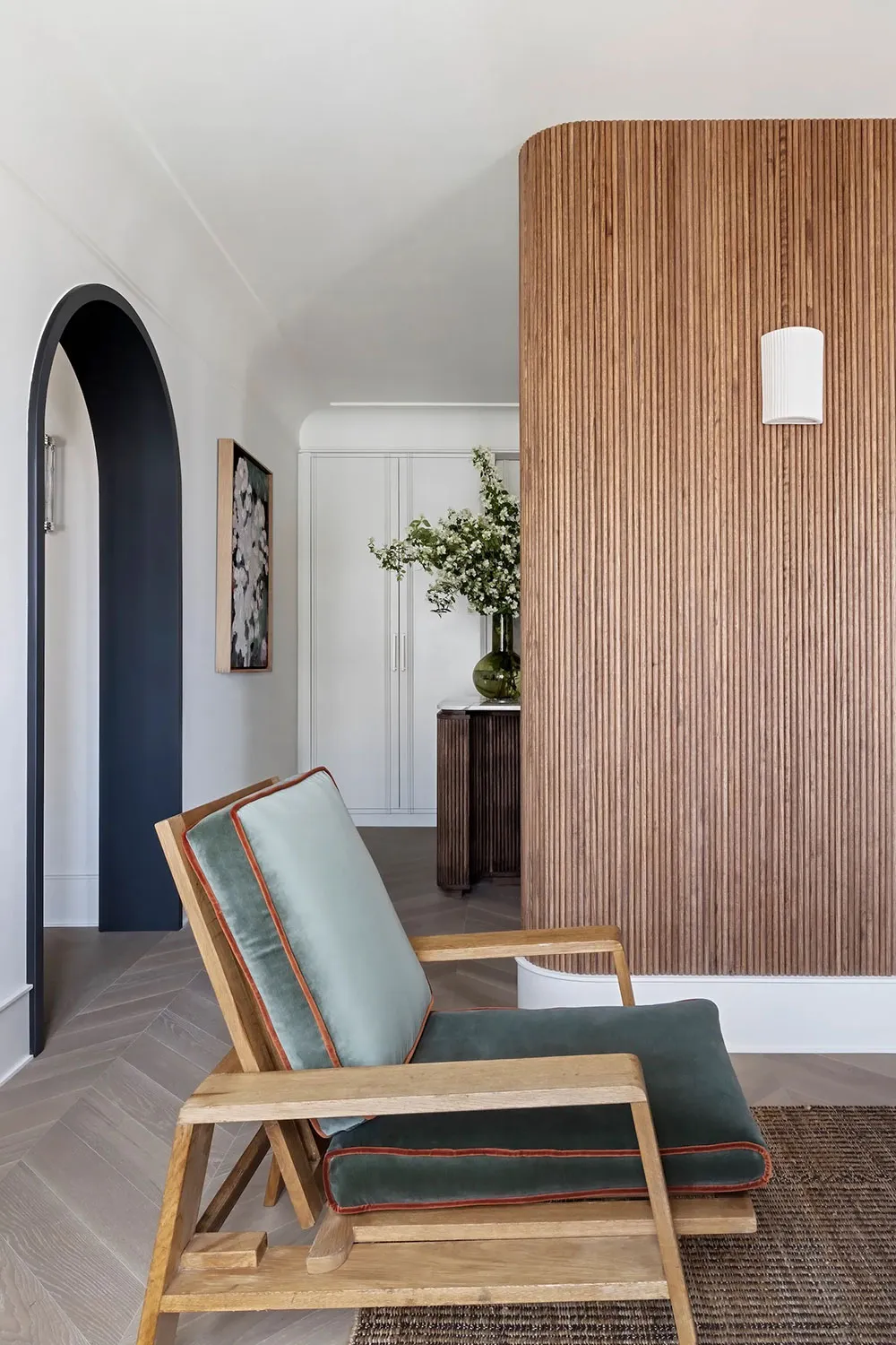 Warm skandinavischer Interieur mit akzentuierter dunkler Wand (69 qm)
