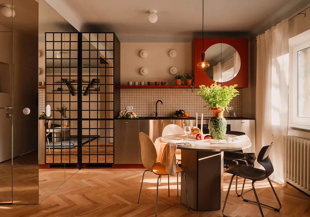 Moderner neuer Stil kleiner Wohnung eines Designers in Warschau