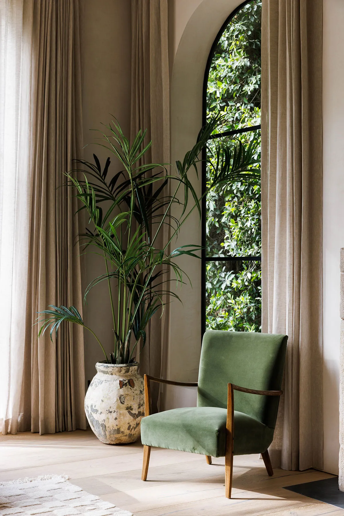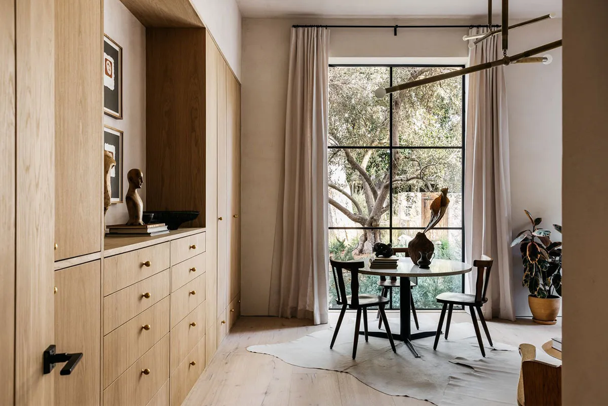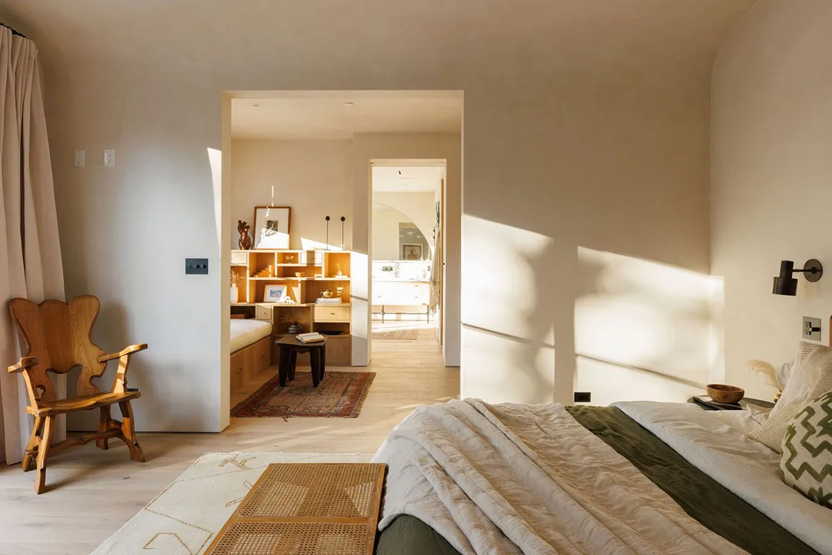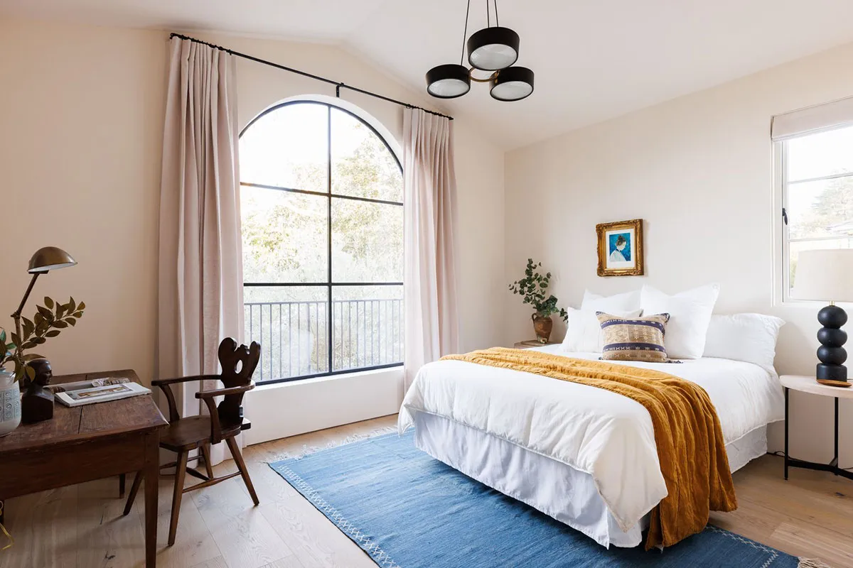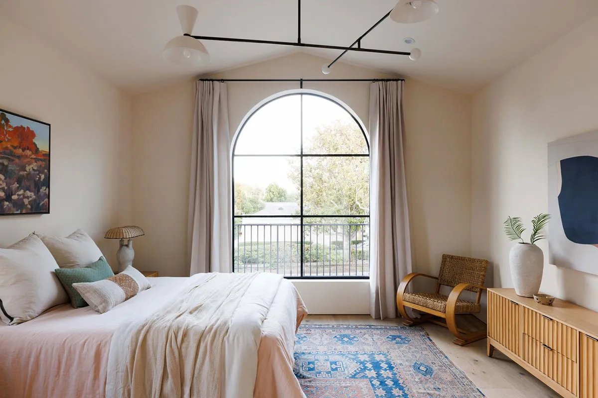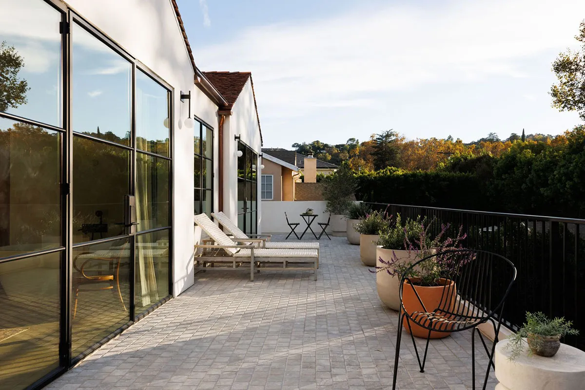 In den äußeren Formen dieses modernen Hauses in Los Angeles lässt sich leicht der starke mediterrane Einfluss erkennen: charakteristische bogenförmige Fenster, Rolläden, weiße Fassaden.