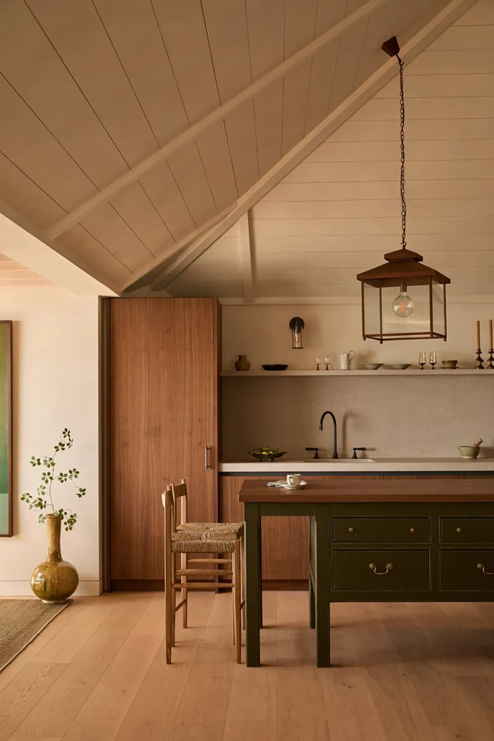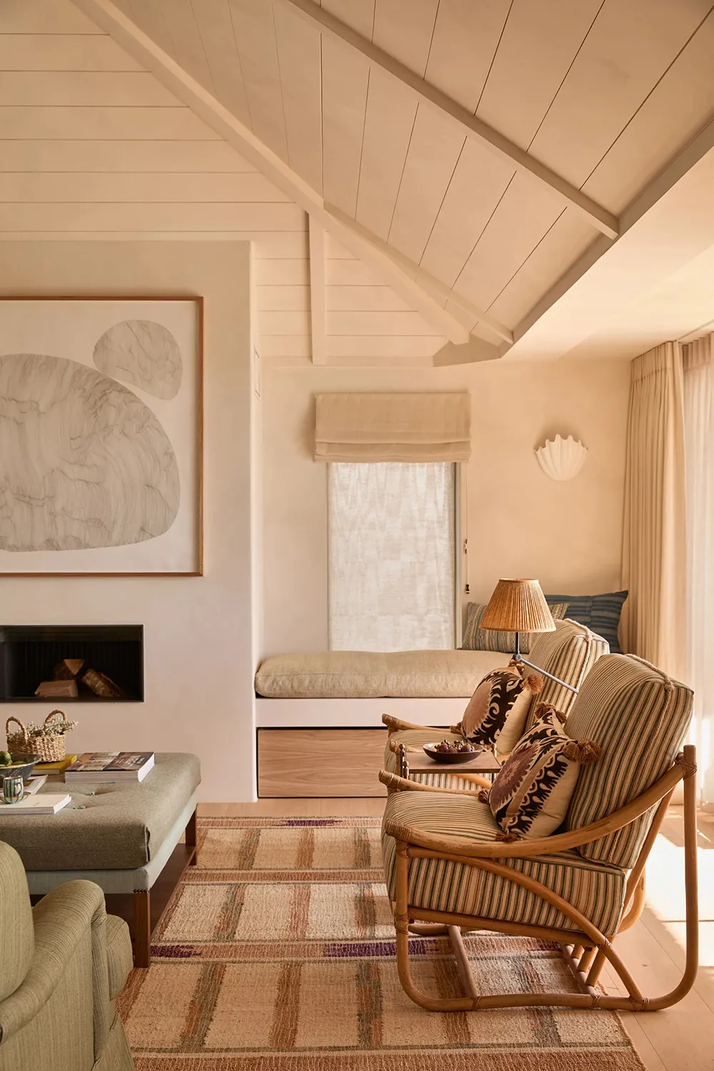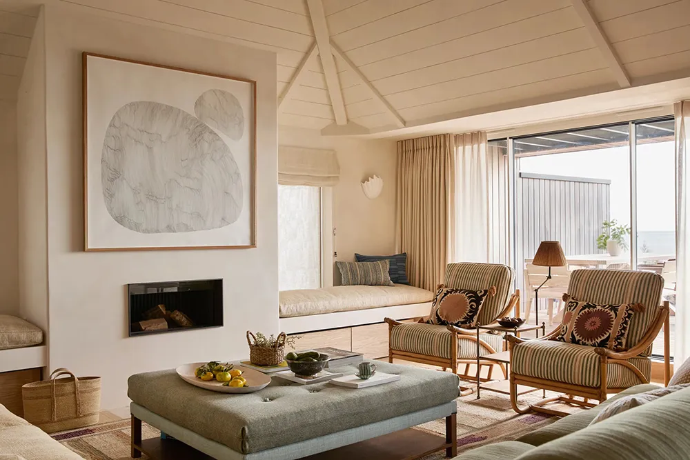 Warm und ästhetischer Interior eines Familienhauses am Strand in England