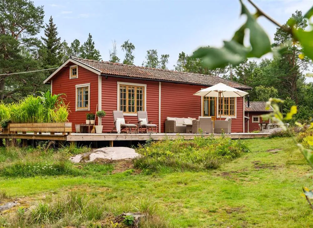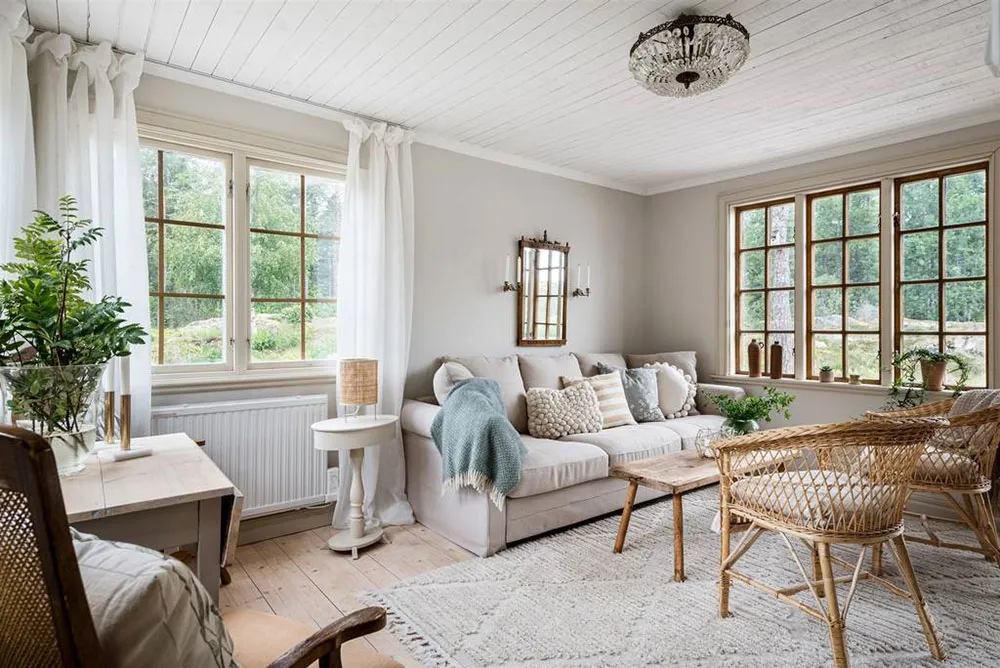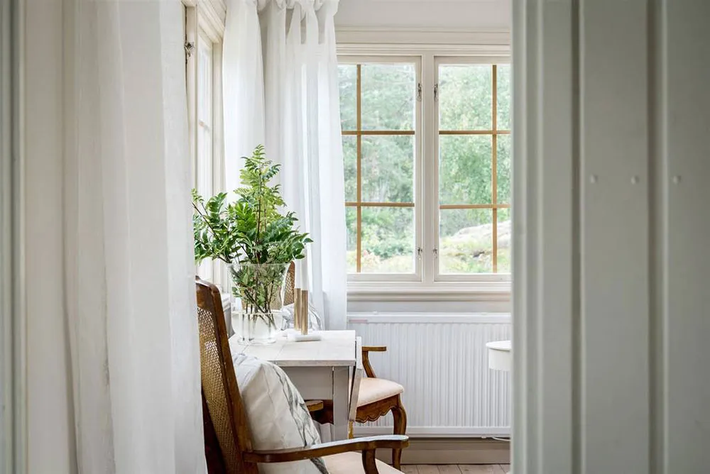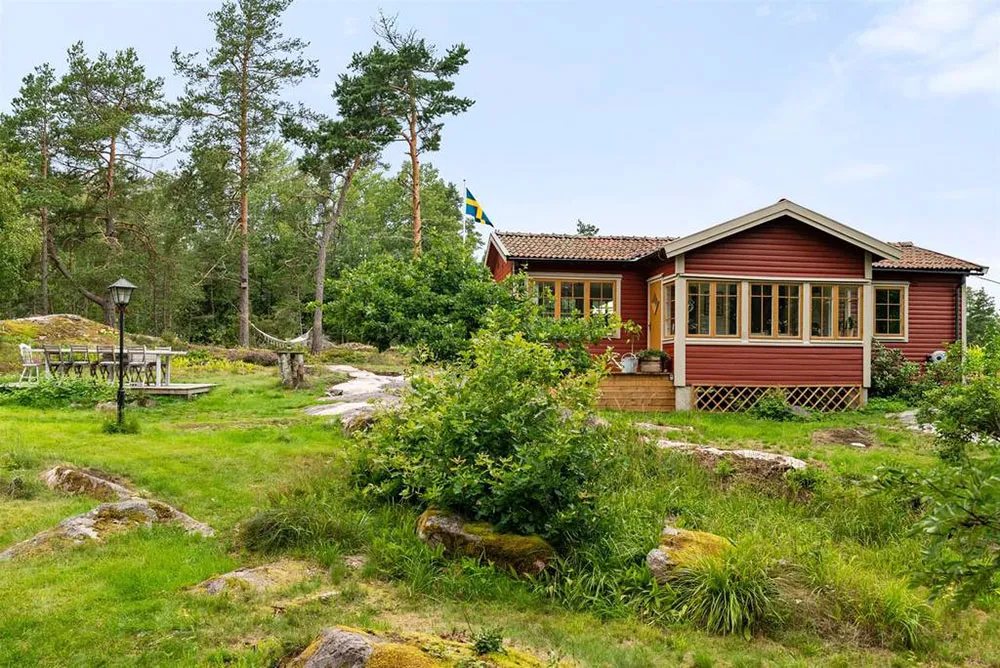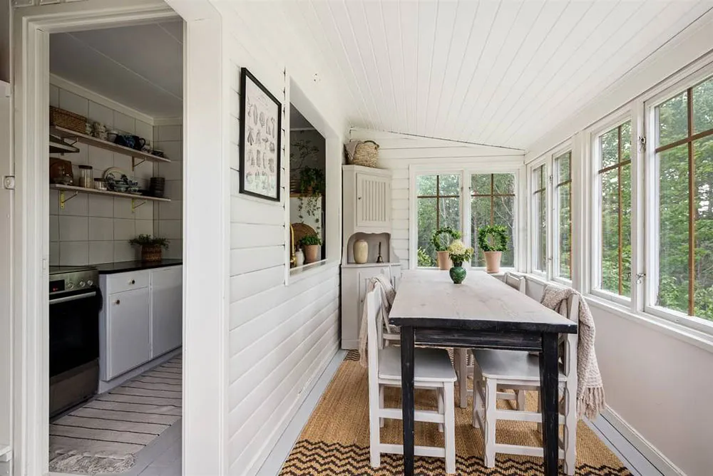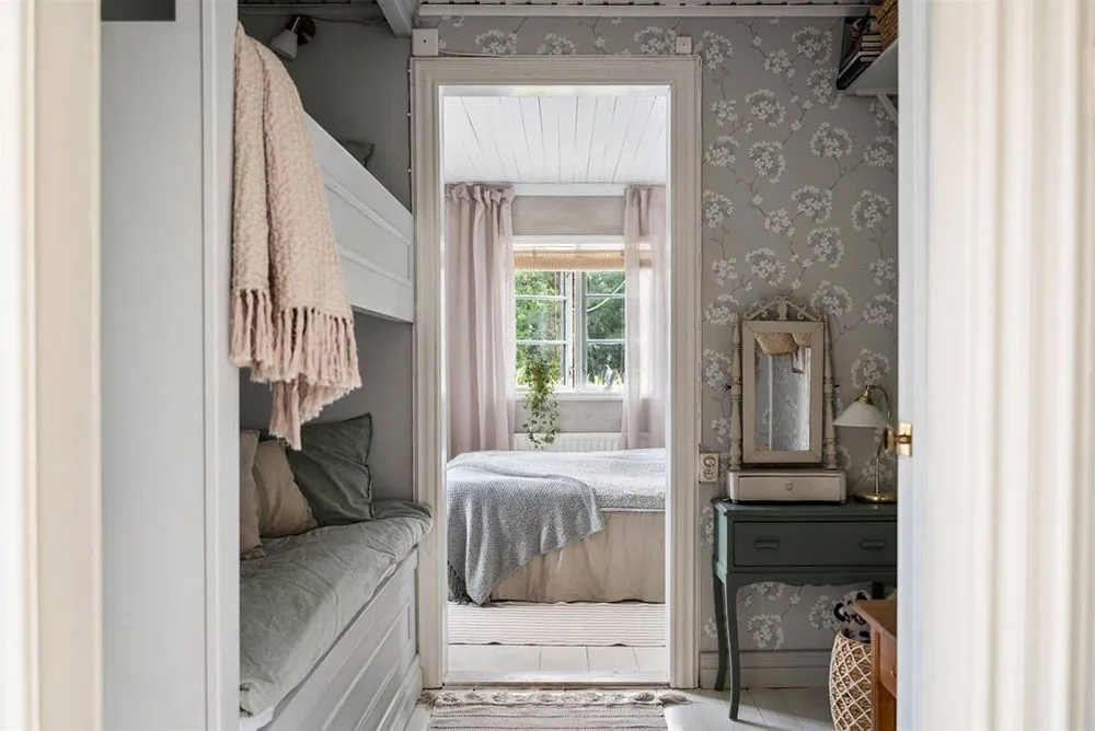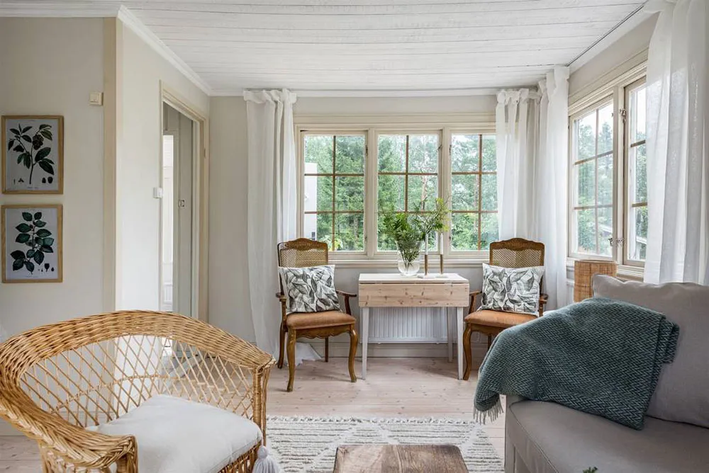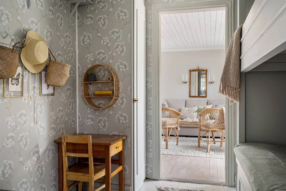 Wunderschöne Blumen-Wände und lebhafte Drucke: Schöne schwedische Ferienvilla