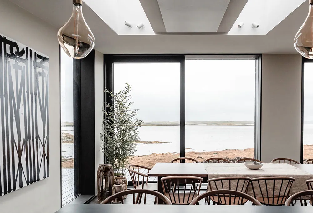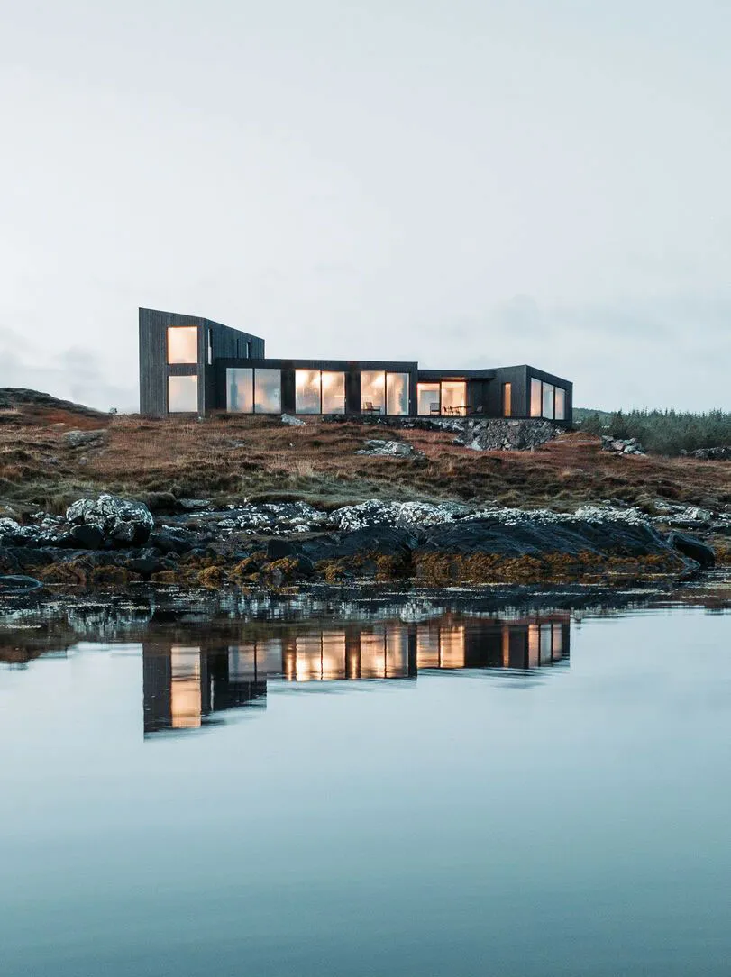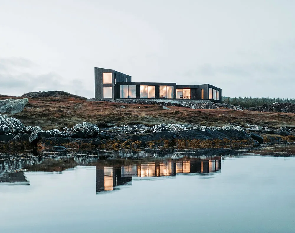 Allein in der wilden Natur: stylischer Haus auf einer Insel in Schottland