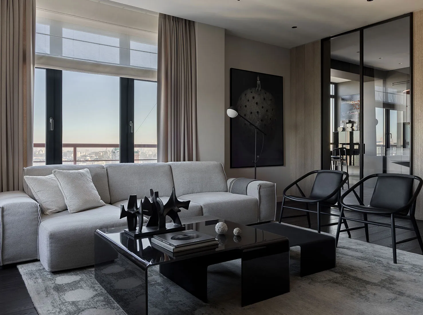 Stylische Männerwohnung mit schwarzem Boden in Moskau (80 qm)