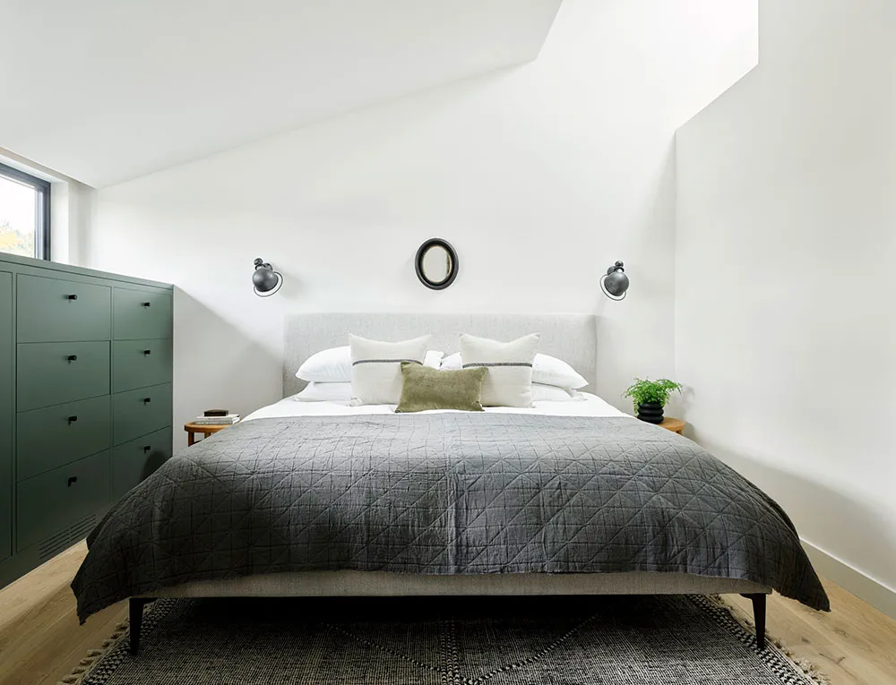 Weiße Möbel auf grauem Hintergrund: stylische schwedische Ferienvilla