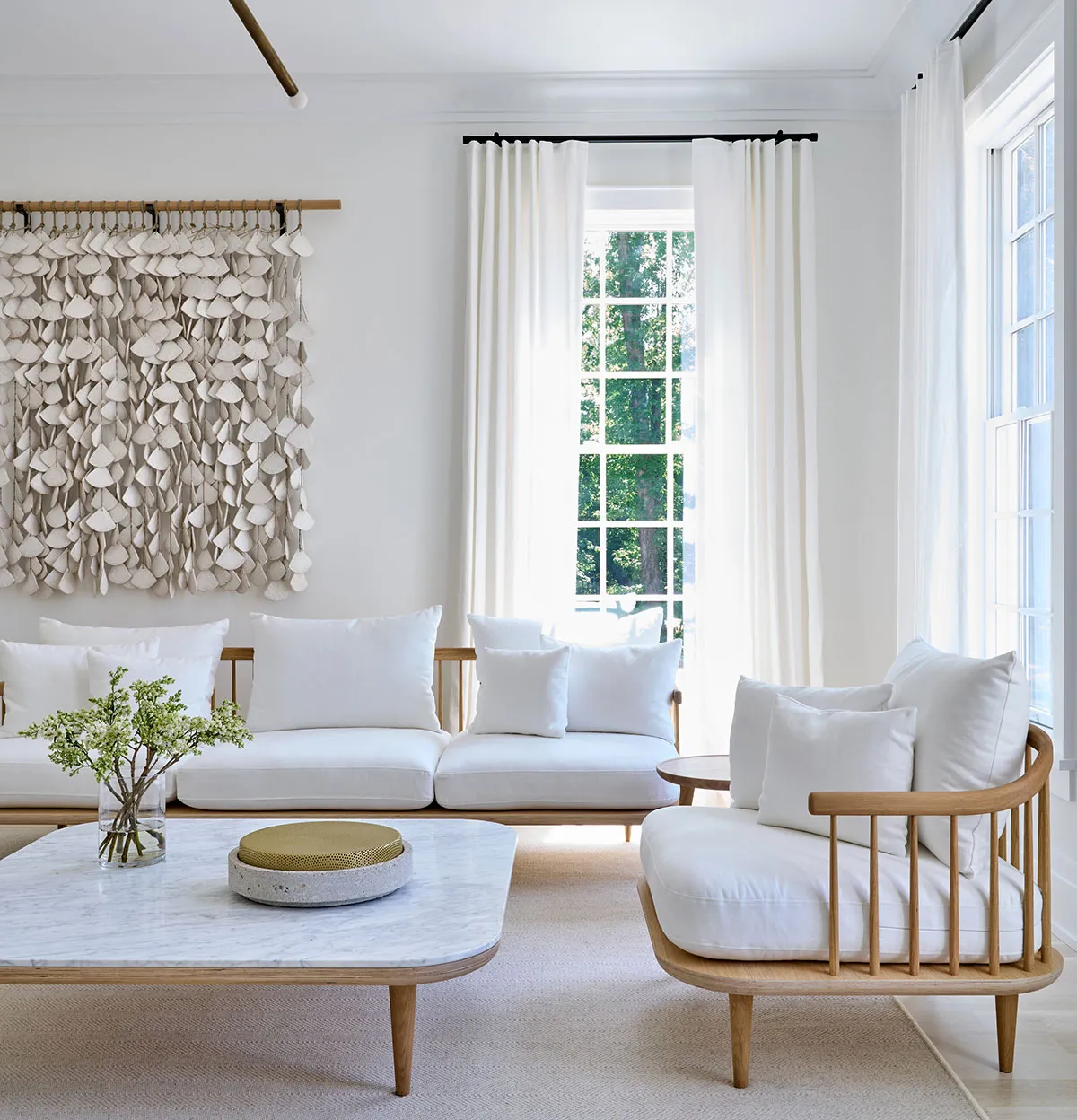 Luftiger weißer Interior mit Holzdetails auf Long Island