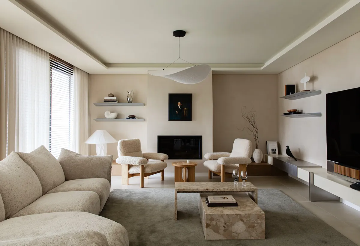 Gemäßigte Farbpalette und ästhetische moderne Innenausstattungen: Haus in Melbourne