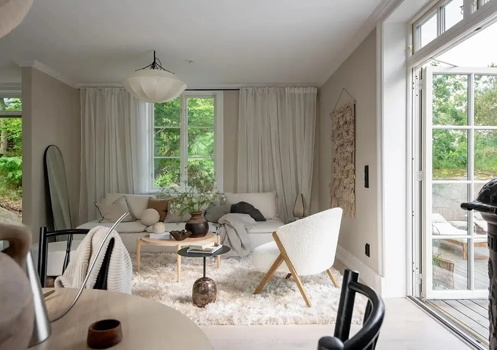 Die Eigentümer dieses Cottages in Schweden sind kürzlich in die Stadt gezogen, um Ruhe und Einheit mit der Natur zu finden. Dennoch haben sie nicht darauf verzichtet, den Komfort und die Eleganz zu erhalten, die städtische Appartements bieten können.