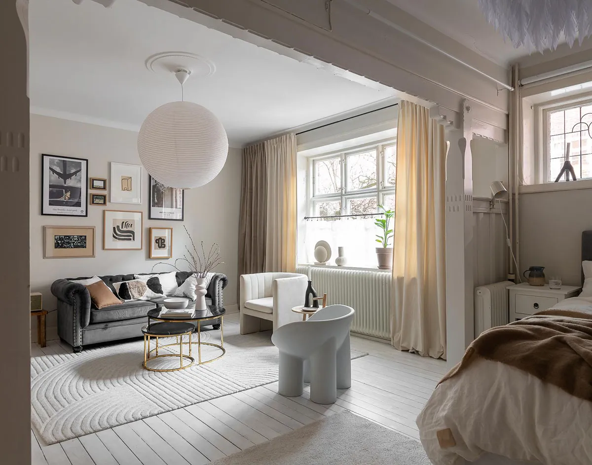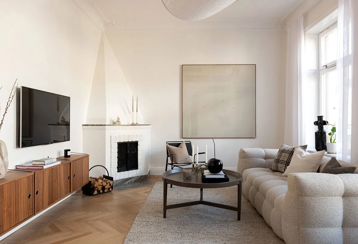 Eleganter skandinavischer Interior in angenehmen neutralen Tönen (71 qm)