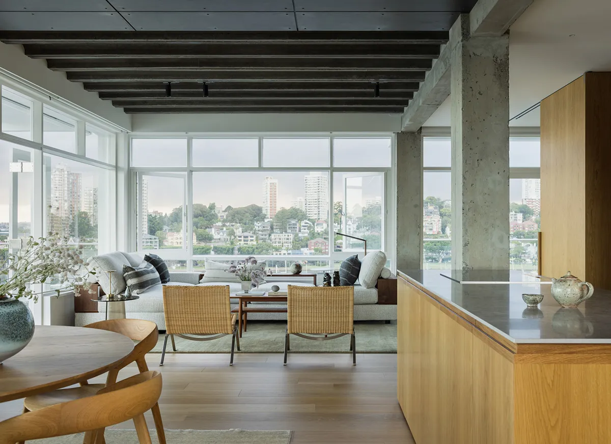 Holz, Beton und Blick auf die Bucht: Wohnung in Sydney