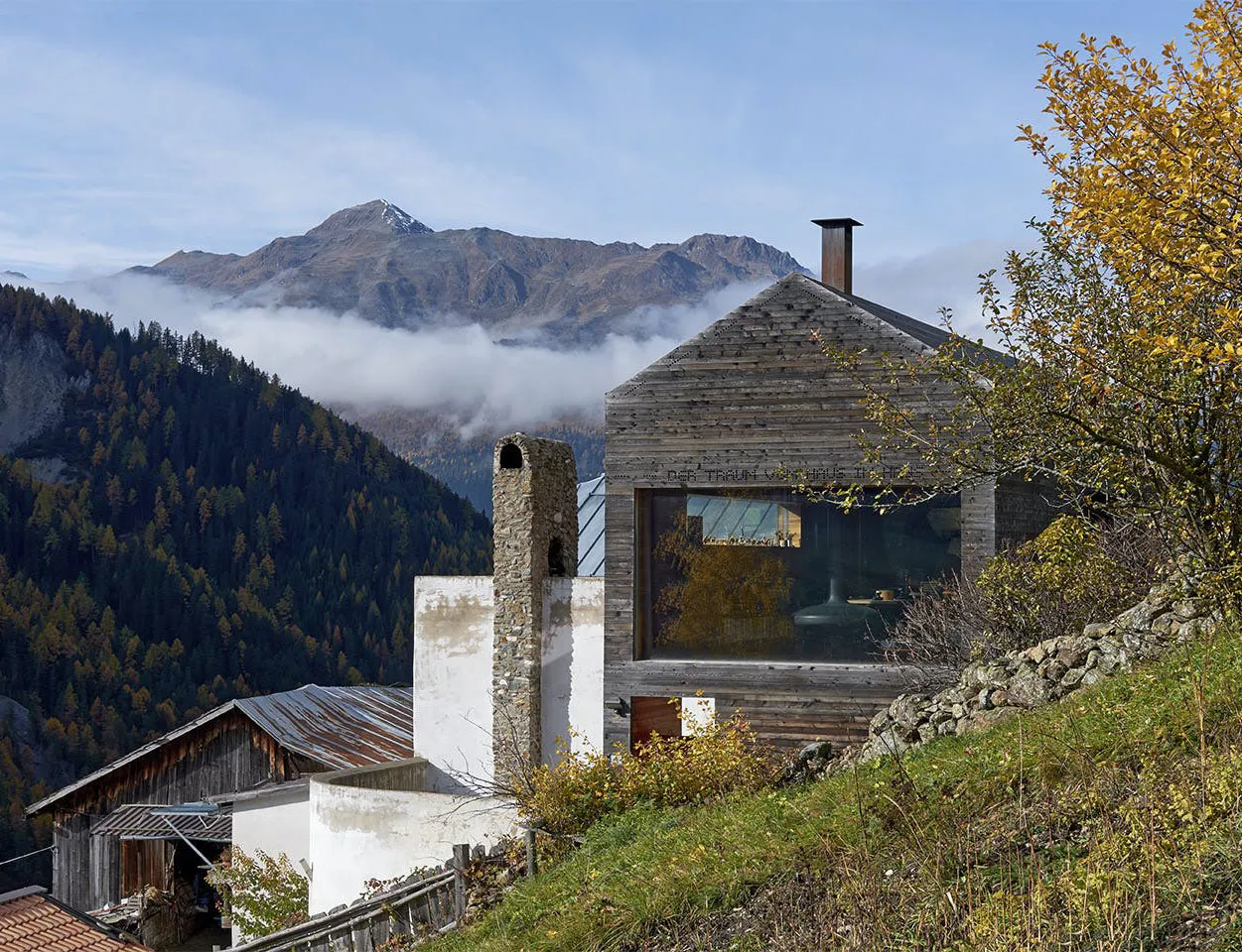 Modernes Bergwohnhaus auf dem Platz eines traditionellen Hüttenhauses in den italienischen Alpen