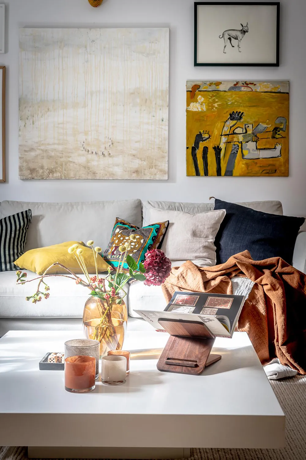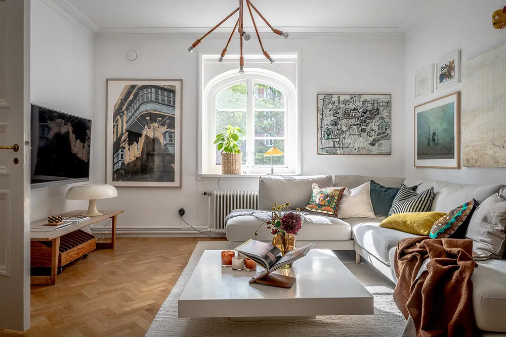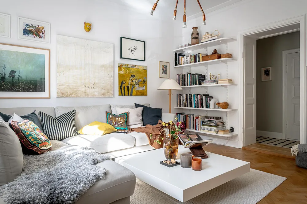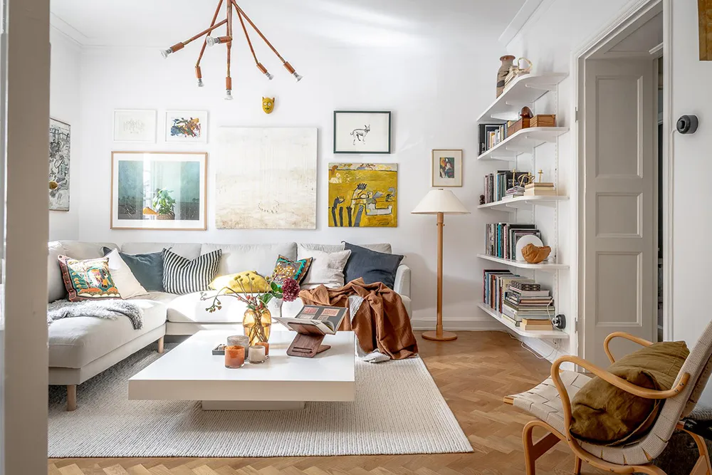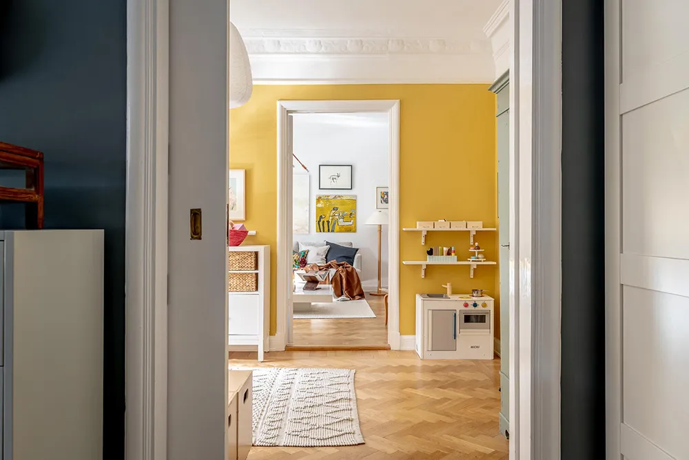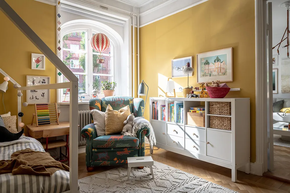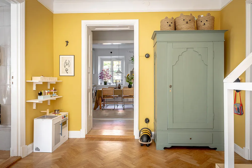In dieser sonnigen schwedischen Wohnung riecht es nach Sommer – Die Fülle an lebhaften Dekorationselementen und Gelbakzenten schufen eine fröhliche Atmosphäre in den Räumen.
