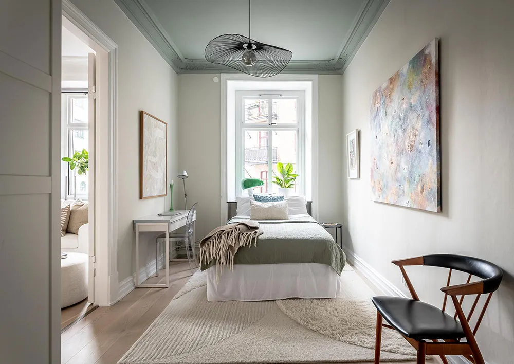 Ruhiger skandinavischer Interior mit auffälligem Sofa (89 qm)