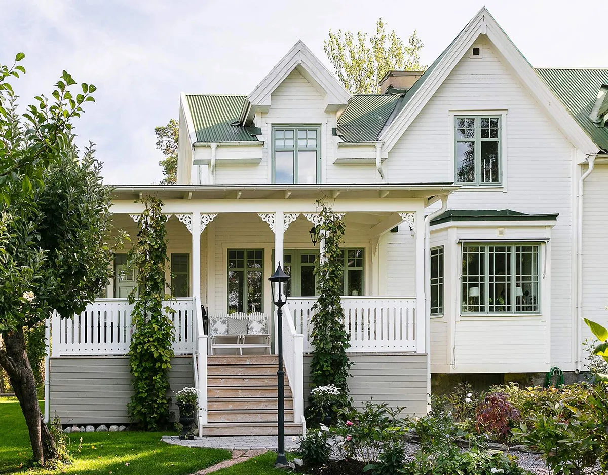 Schneeweißes Schneckenhaus: Charaktervoller Ferienhaus mit Veranda in Schweden