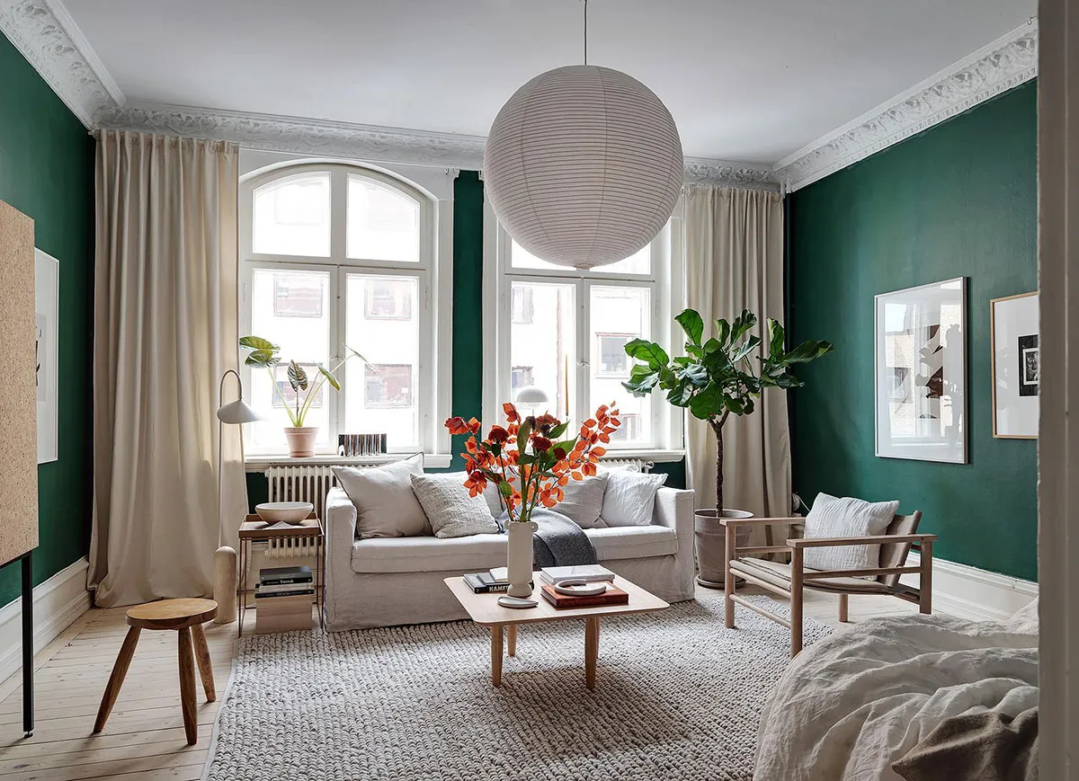 Kleine Wohnung in Goteborg mit hohen Decken und grünen Wänden (47 qm)