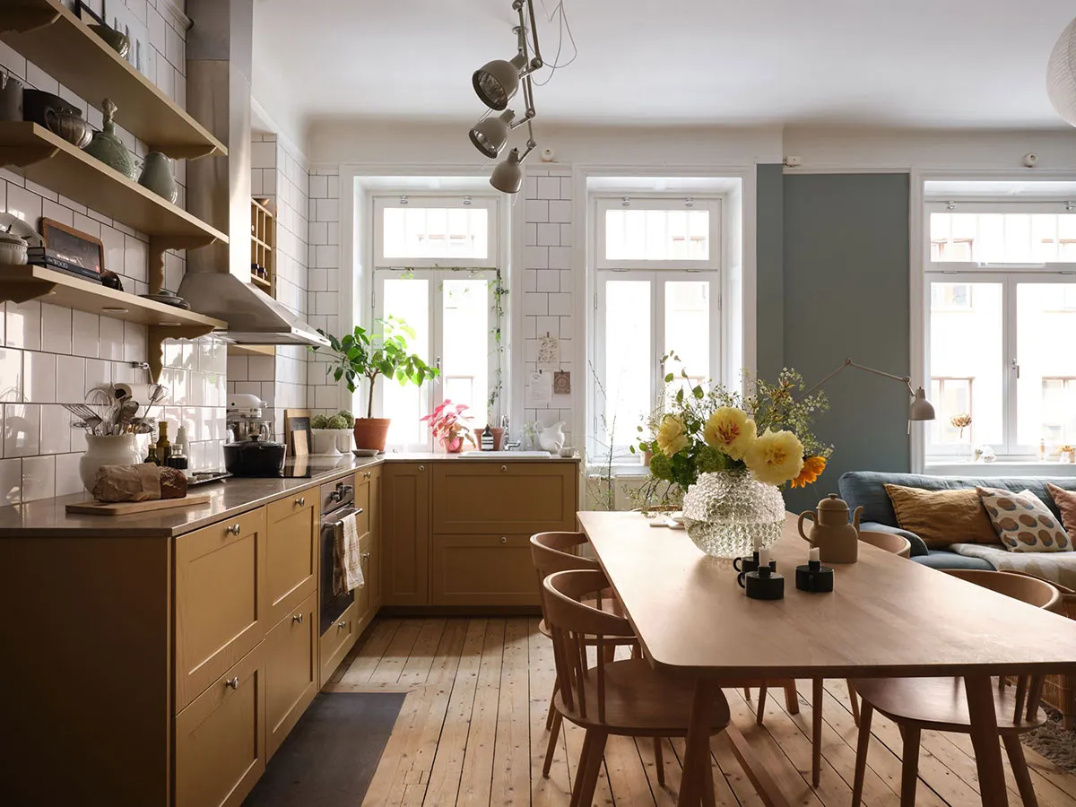 Gemütliche gelbe Küche und andere farbige Akzente im skandinavischen Interieur (78 qm)