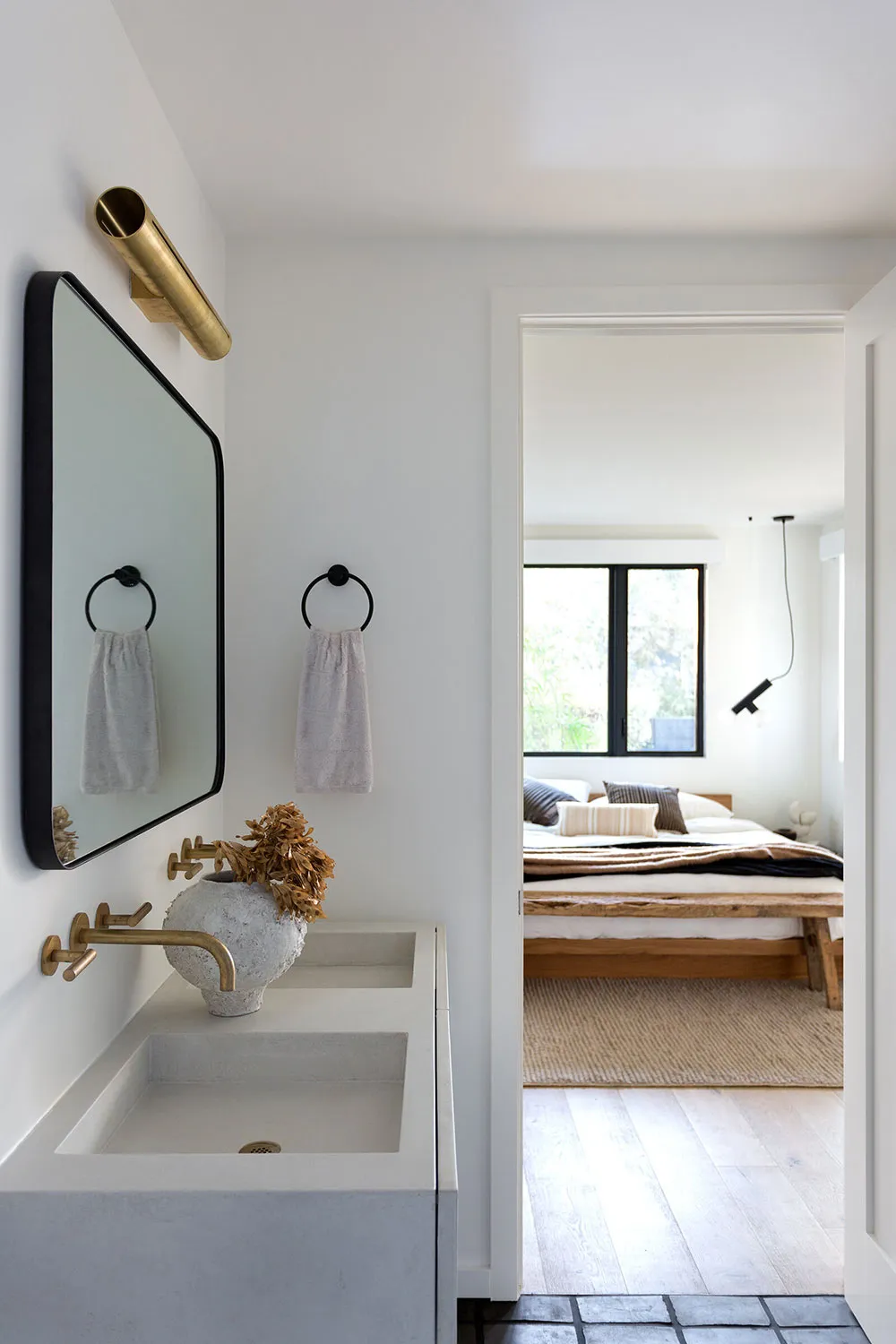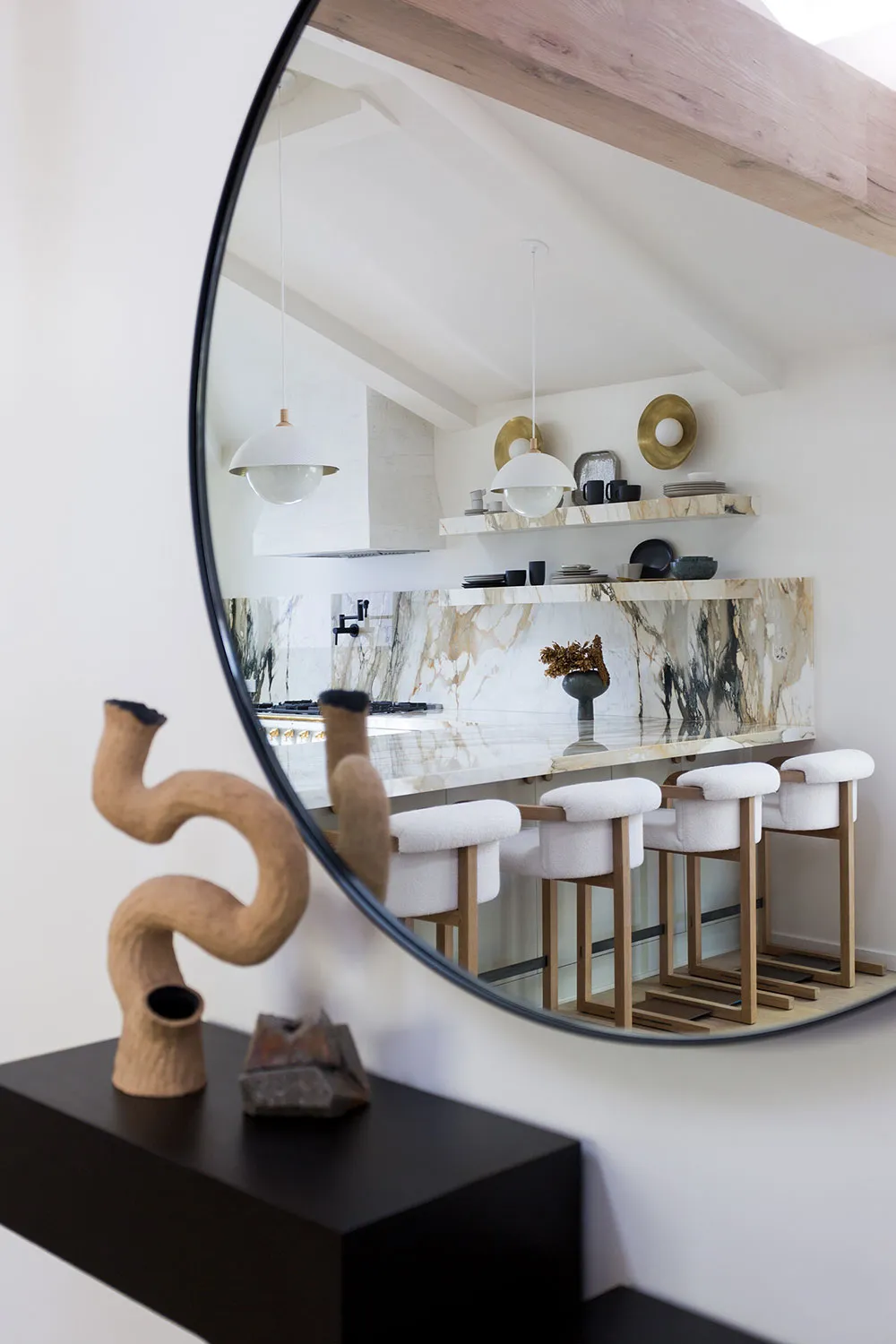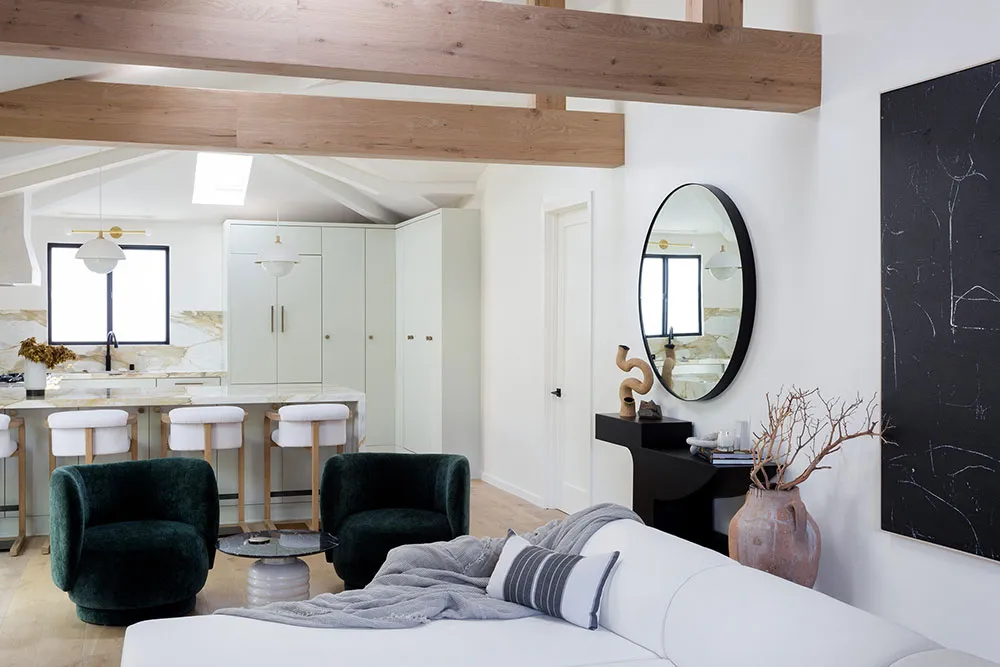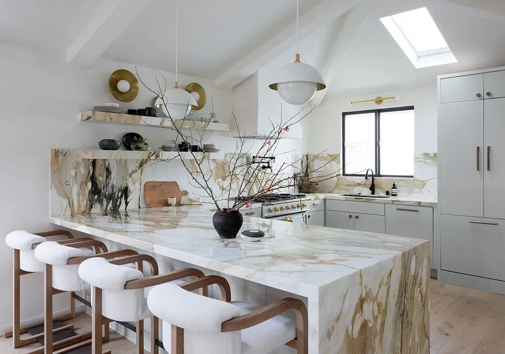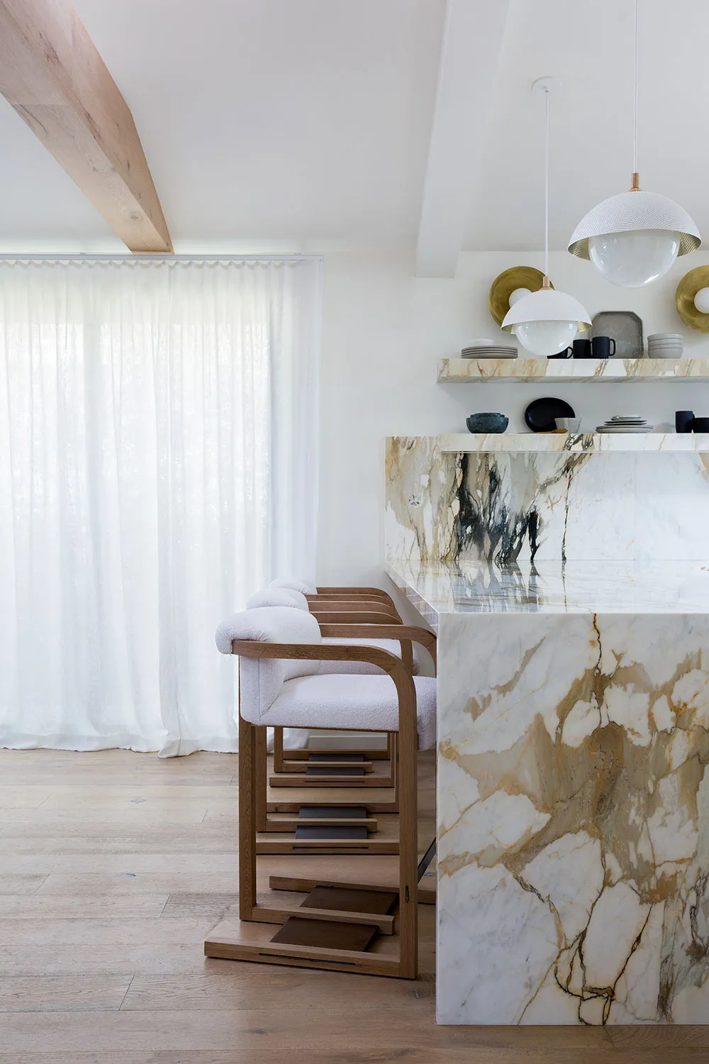 Weißer Interior mit warmen Akzenten und schönen Marmor in Kalifornien